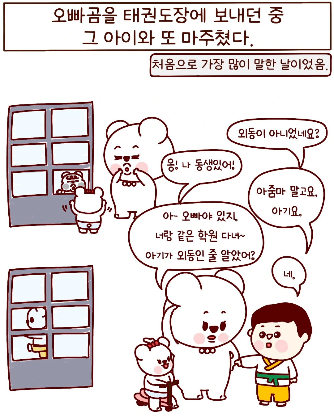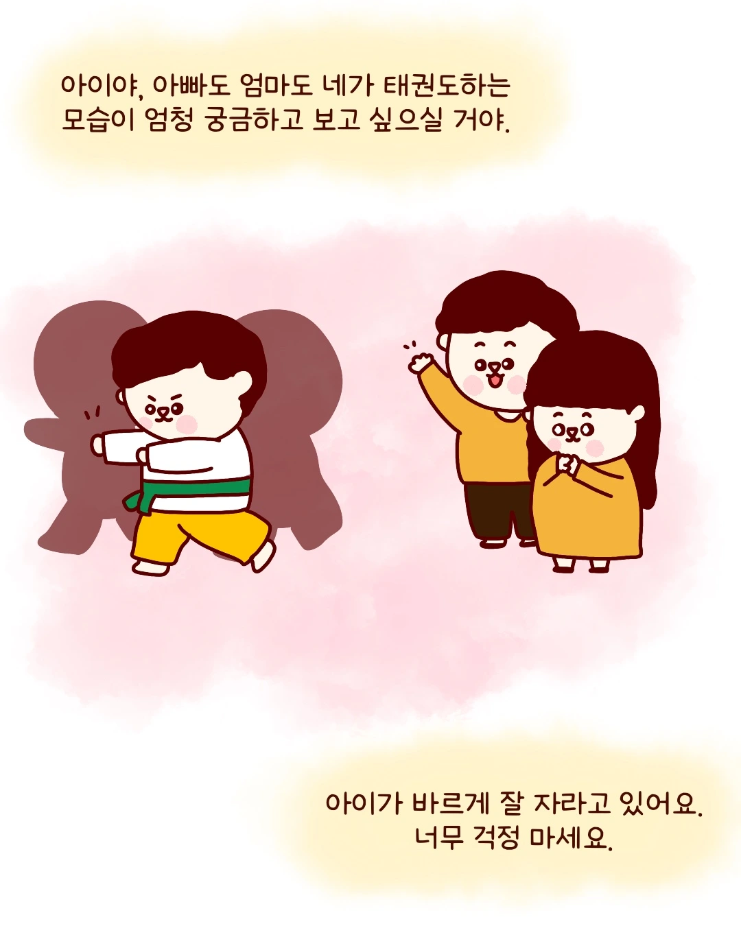 수업이 끝나면 누구보다 큰 소리로 사범님께 인사를 드리고 갈 길 가는 씩씩한 아이였습니다.