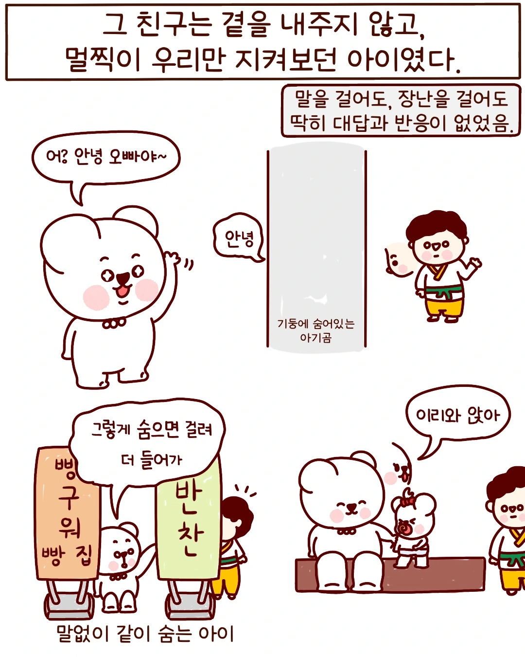 혼자 다니지만 주눅 들거나, 친구들을 지켜보는 타입의 아이는 아니었어요.