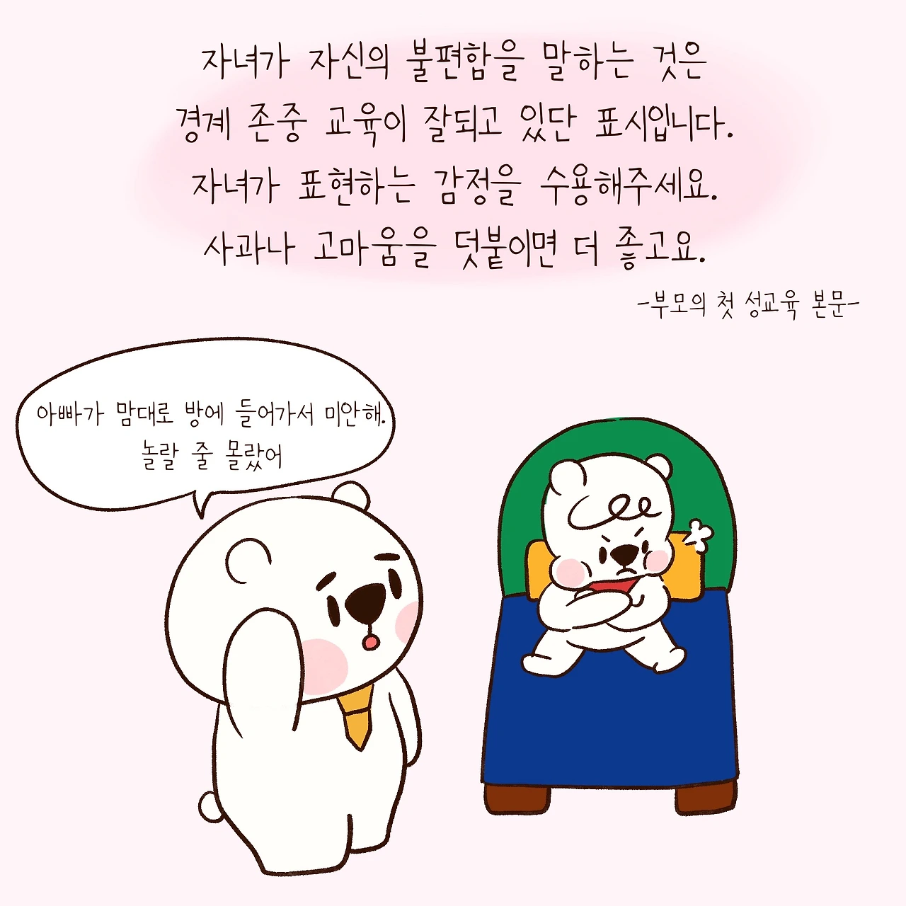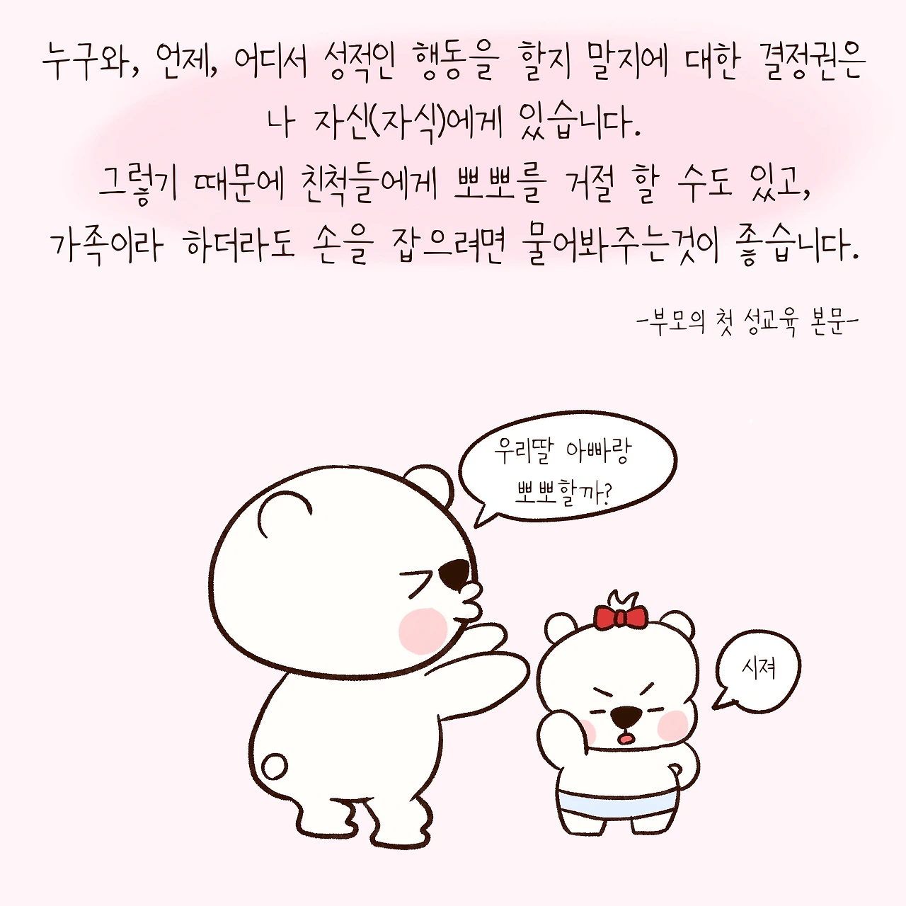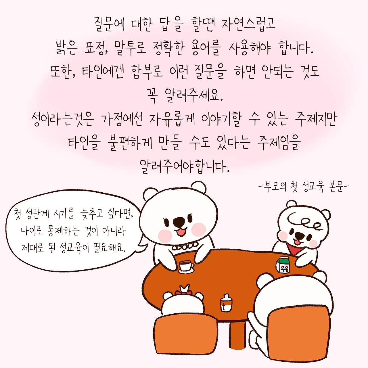엄마곰처럼 아이에게 성교육하기가 망설여지신다!