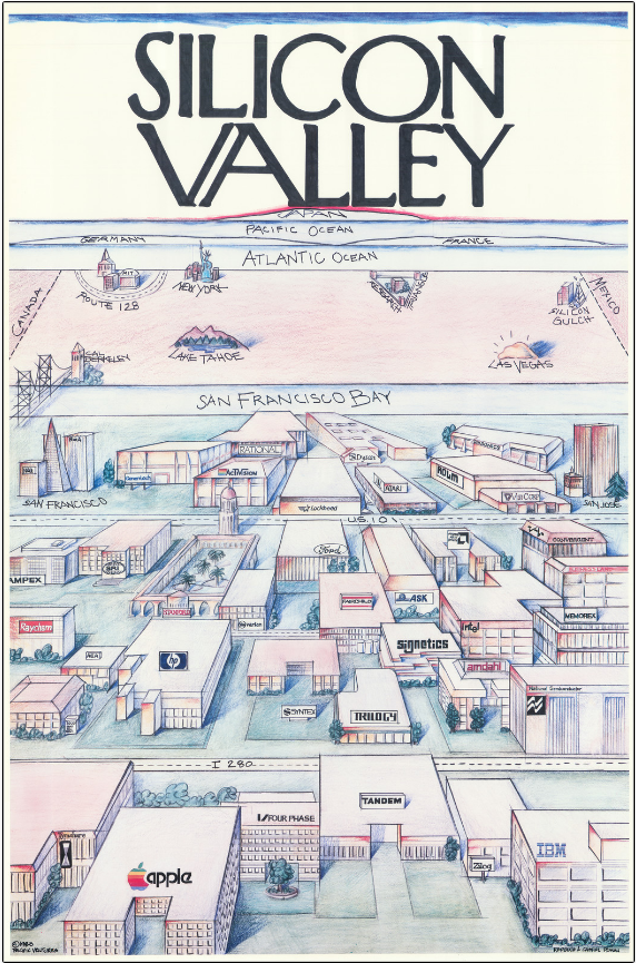 1983년도 Silicon Valley Map을 보면 주로 PC제조와 관련된 회사들(예, Apple, IBM, HP, AMD)과 반도체 회사들(예, National Semiconductor, Rohm, Fairchild)이 주도를 하였다. 그리고 대략 10년 후인 1991년도에는 기존 PC와 관계된 회사와 수많은 반도체 회사들(예, National Semiconductor, Intel, ADI, STM, Toshiba, Fujitsu)등이 실리콘밸리를 주도해 나갔다.