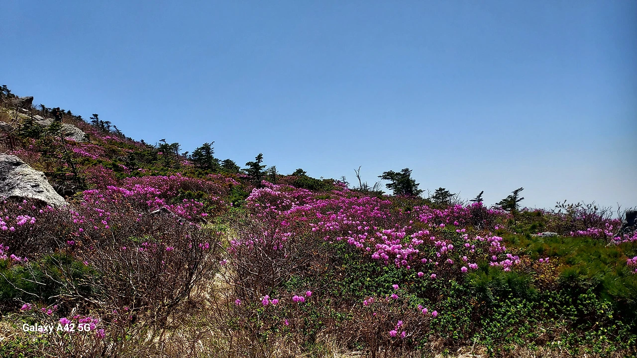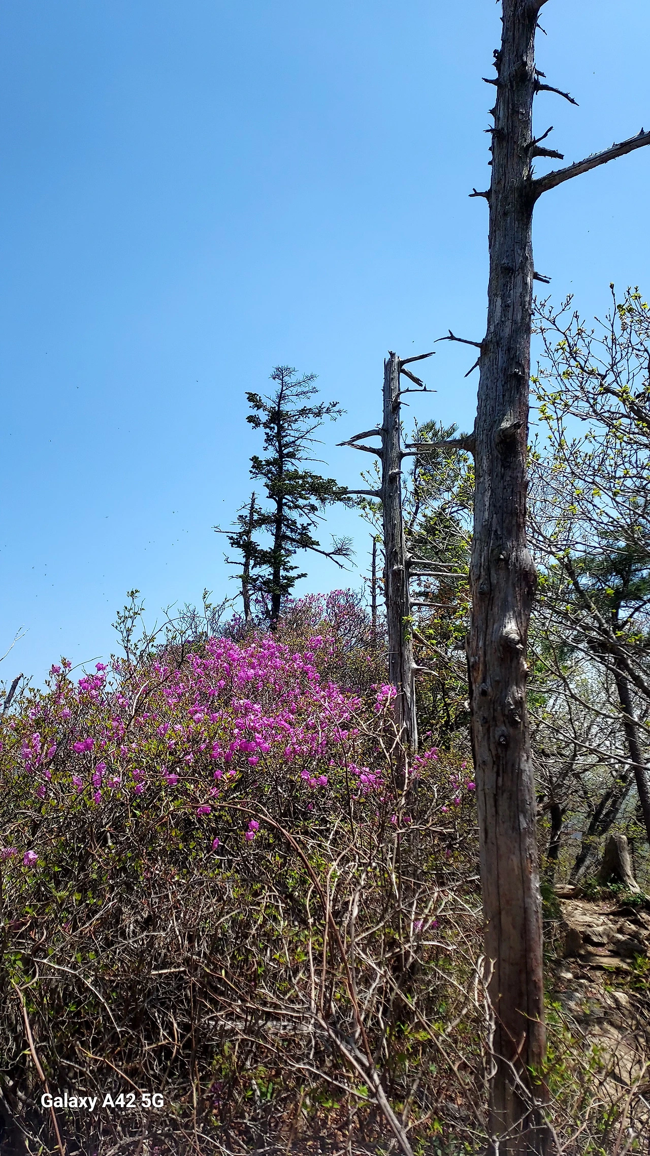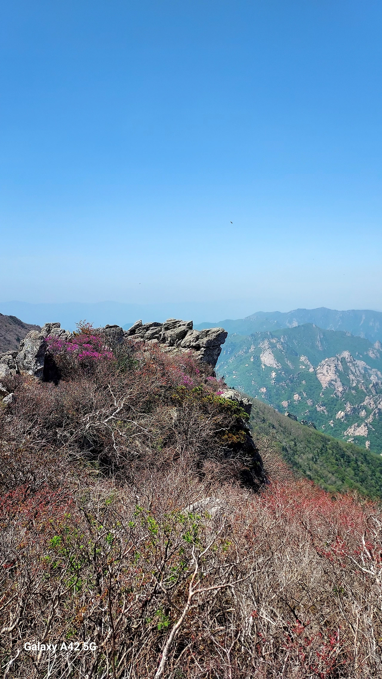 중청 휴게소에서 대청이가 사는 곳까지 능선은 털진달래가 진분홍색 봉오리를 터트리며 봄의 천국을 만들고 있다. 말과 글, 사진으로 다 담아낼 수 없음이 아쉽다.