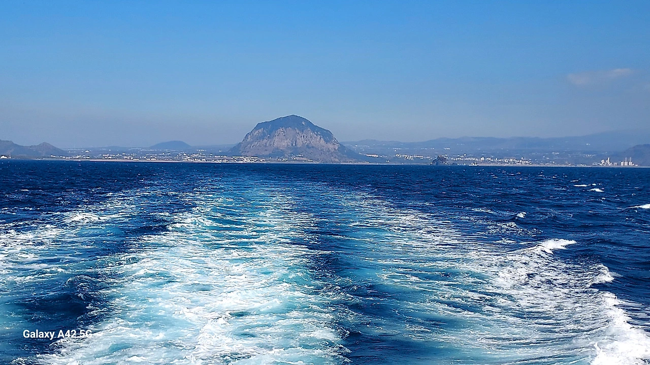 산방산이 물러서고, 형제섬이 손을 흔든다.