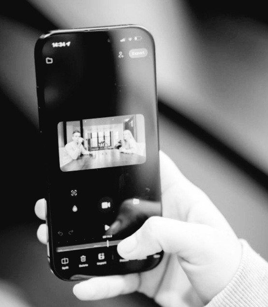 되어 보이는 한 남자가 휴대폰 볼륨을