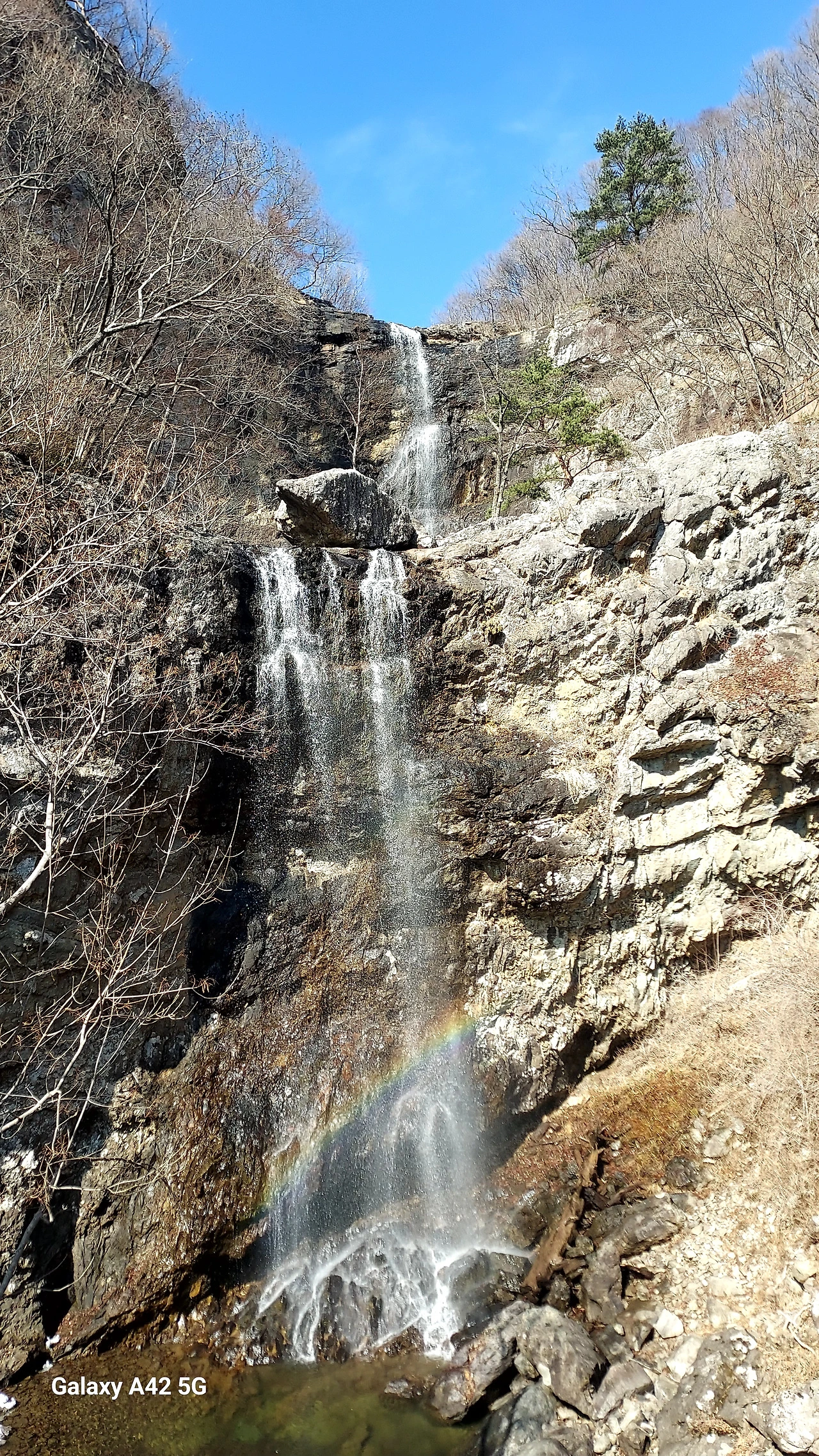 폭포수 물방울이 무지개 되어