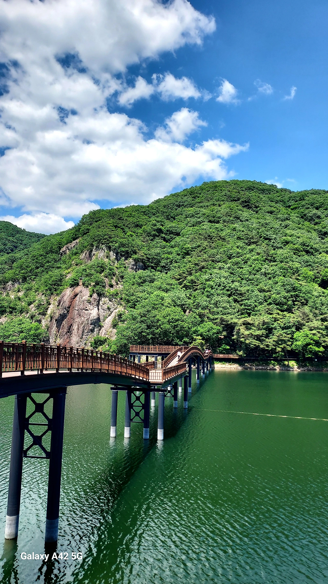 목적지 근처에 있는 담양호 둘레길인 용마루길을 걸었다. 식당에서 어탕국수를 시켰다.
