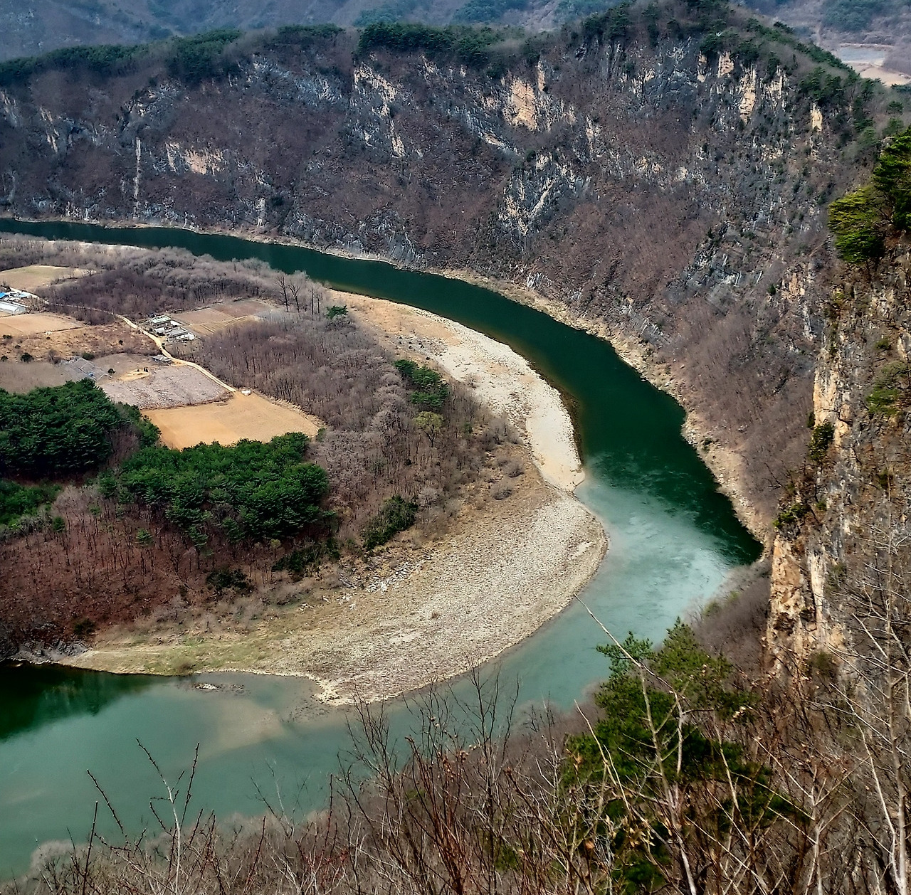 칠족령 전망대에서 동강이 감싼 제장마을과 연포마을이 한눈에 들어왔다.