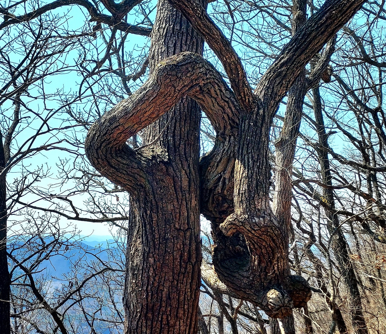 몸이 뒤틀리고 비비 꼬인 참나무의 기괴함과