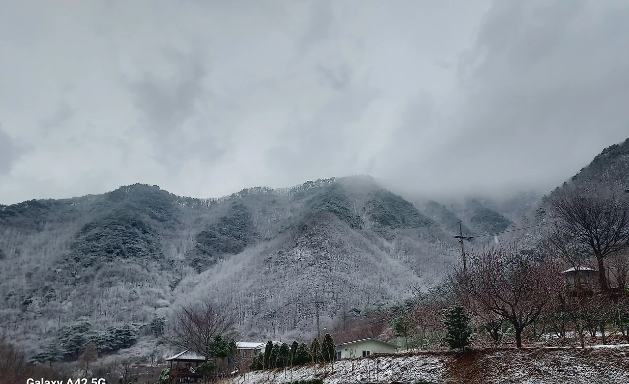 문희마을 주차장에 다다를 즈음, 갑작스레 함박눈이 펑펑 쏟아졌다. 동강 위에 안개눈이 강한 바람에 구름처럼 흘러왔다 멀어져 가는 모습이 얼마나 신비로운지, 봄과 겨울이 공존하는 동강에