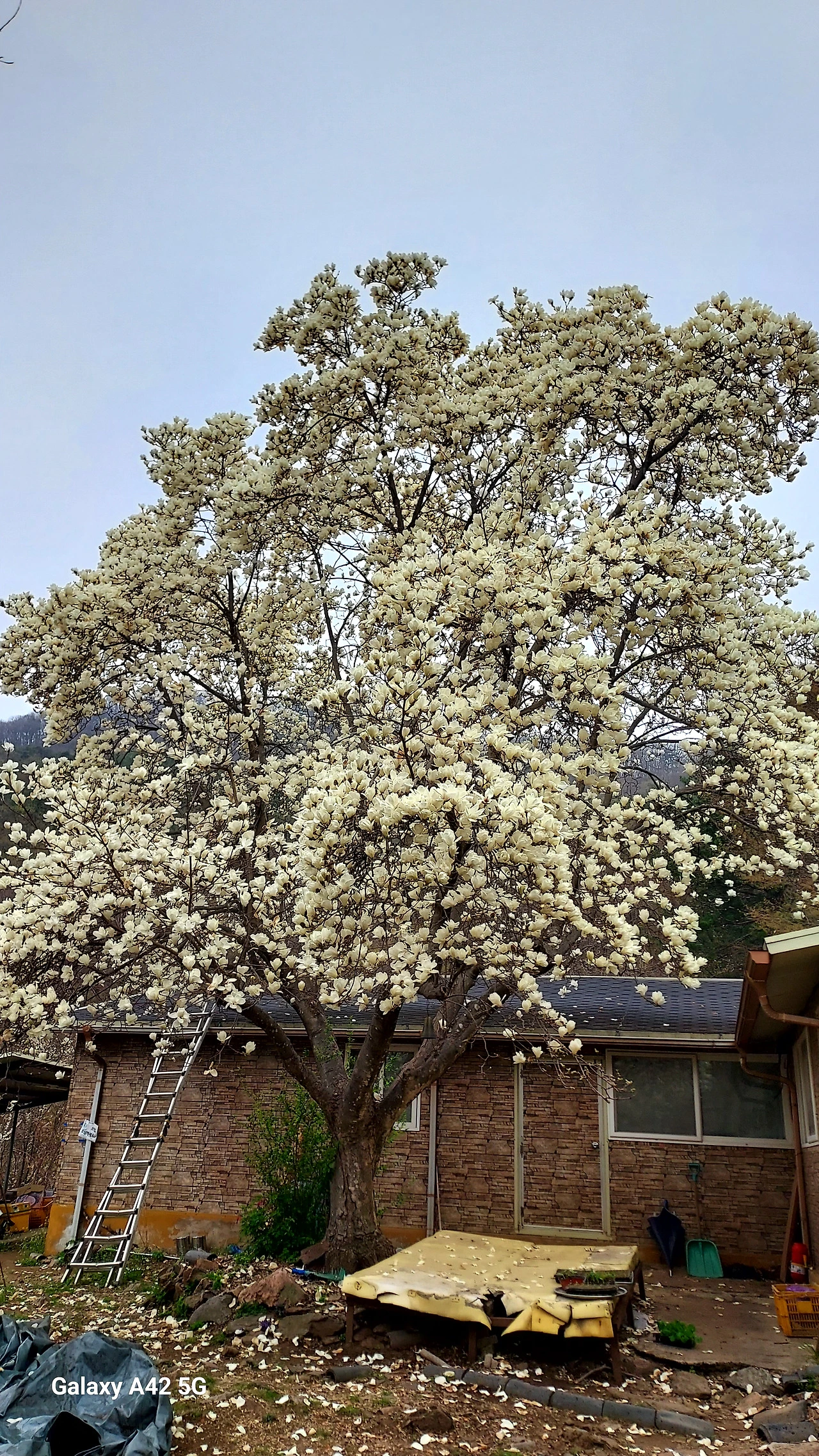넓적한 꽃잎이 절정을 지나 한 잎 두 잎 떨어지고 있었지만, 여전히 화려한 자태를 뽐내고 있었다.
