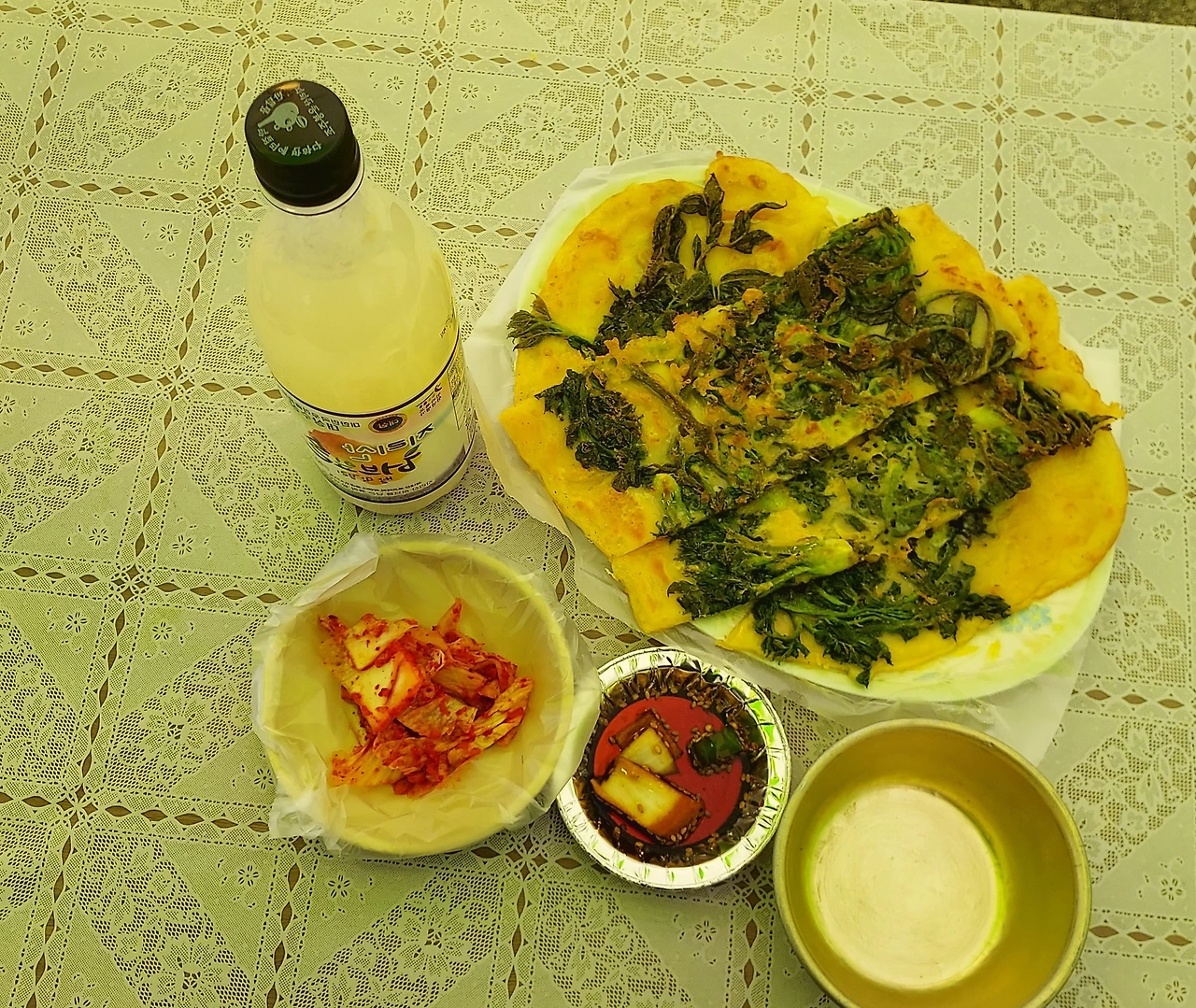 두릅 전과 지리산 허브잎 쌀막걸리 한 병을
