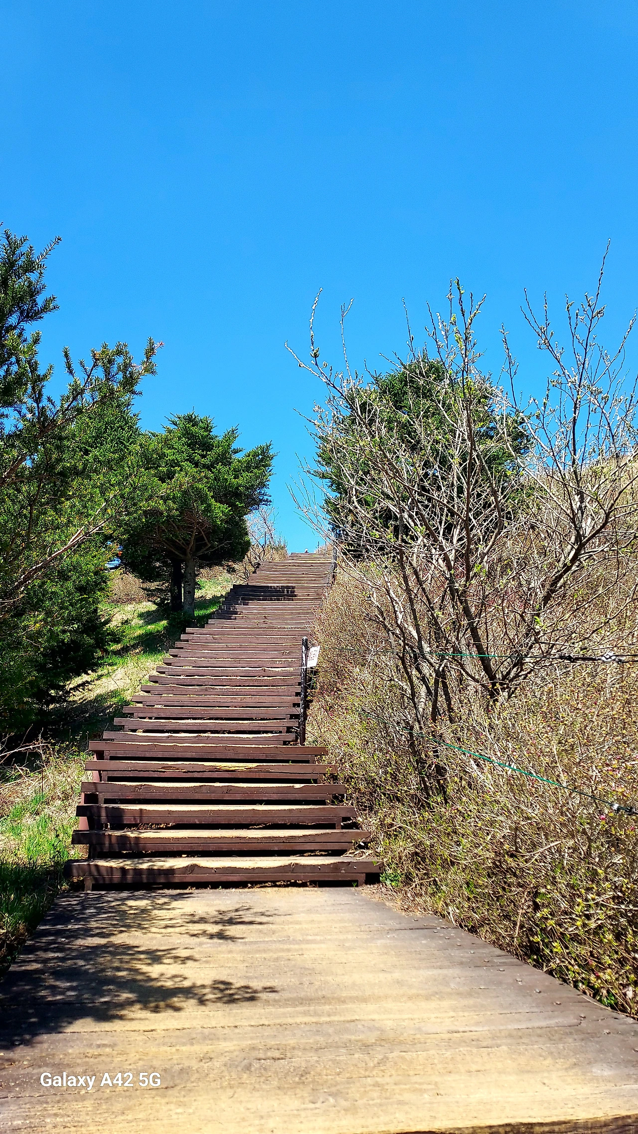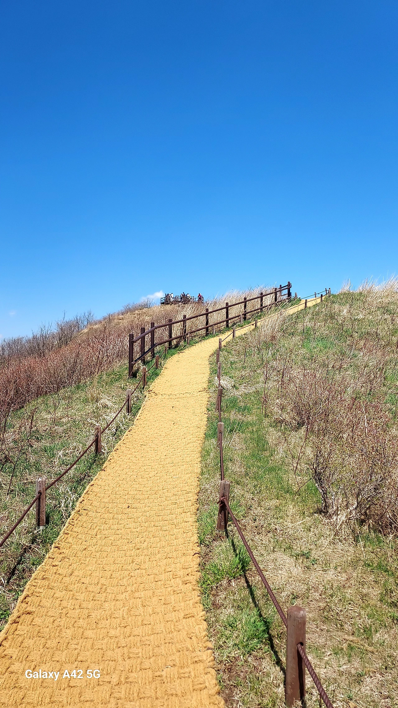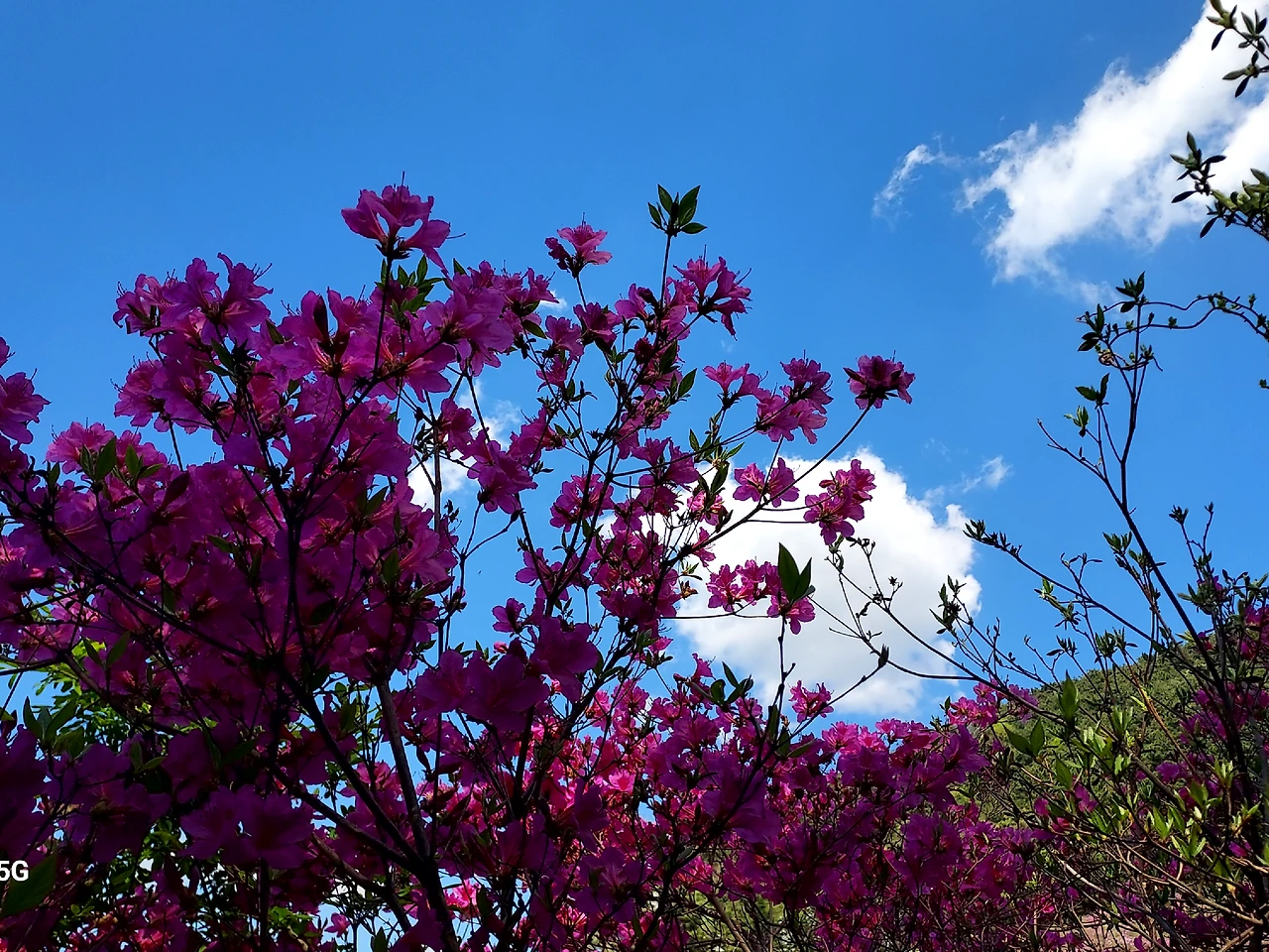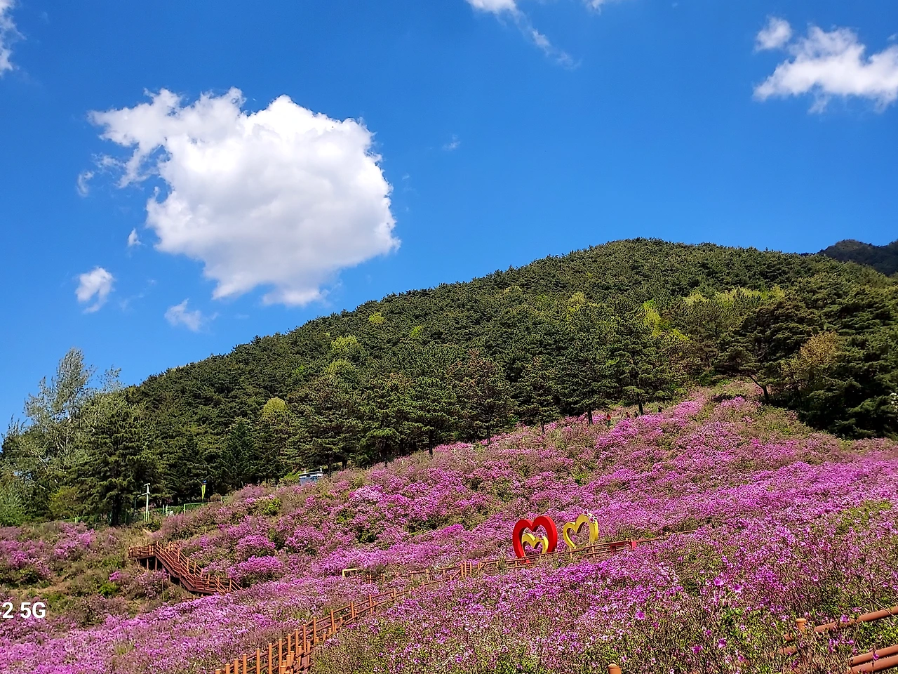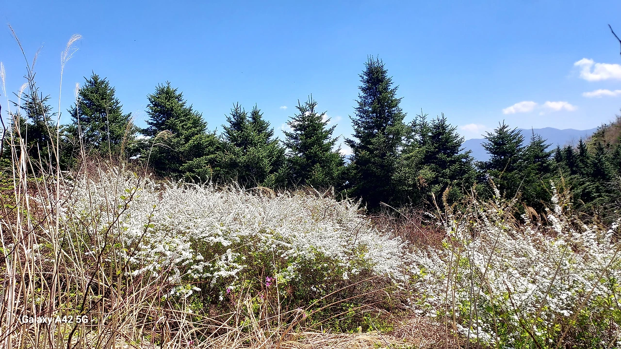 드문드문 진달래가 살짝 웃고, 새하얀 싸리꽃이