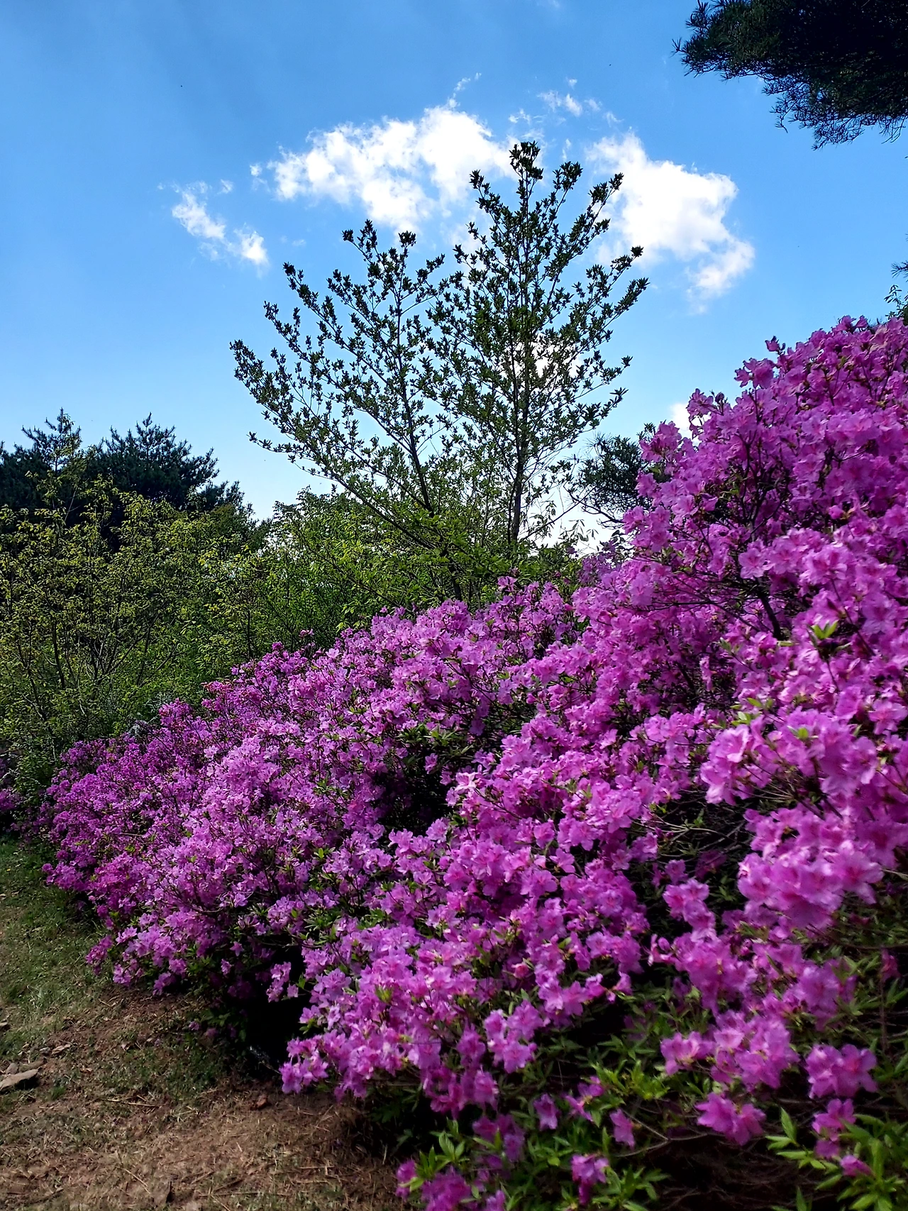 날머리에 있는 용산마을 근처의 철쭉은 활짝