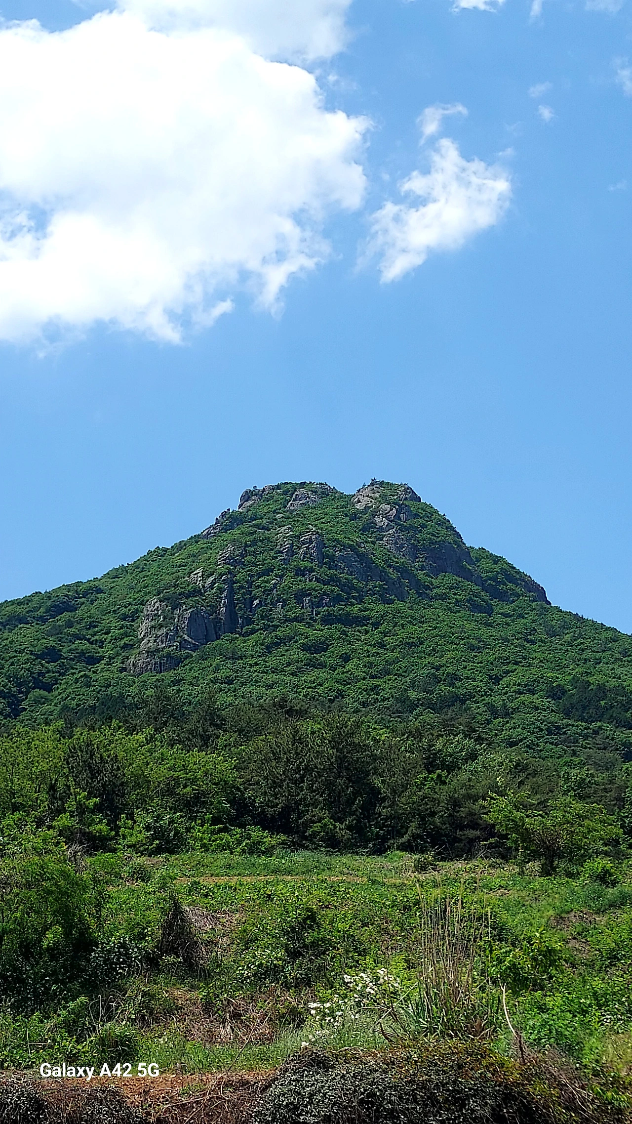 흰구름이 살포시 산 중턱에 내려앉는다.
