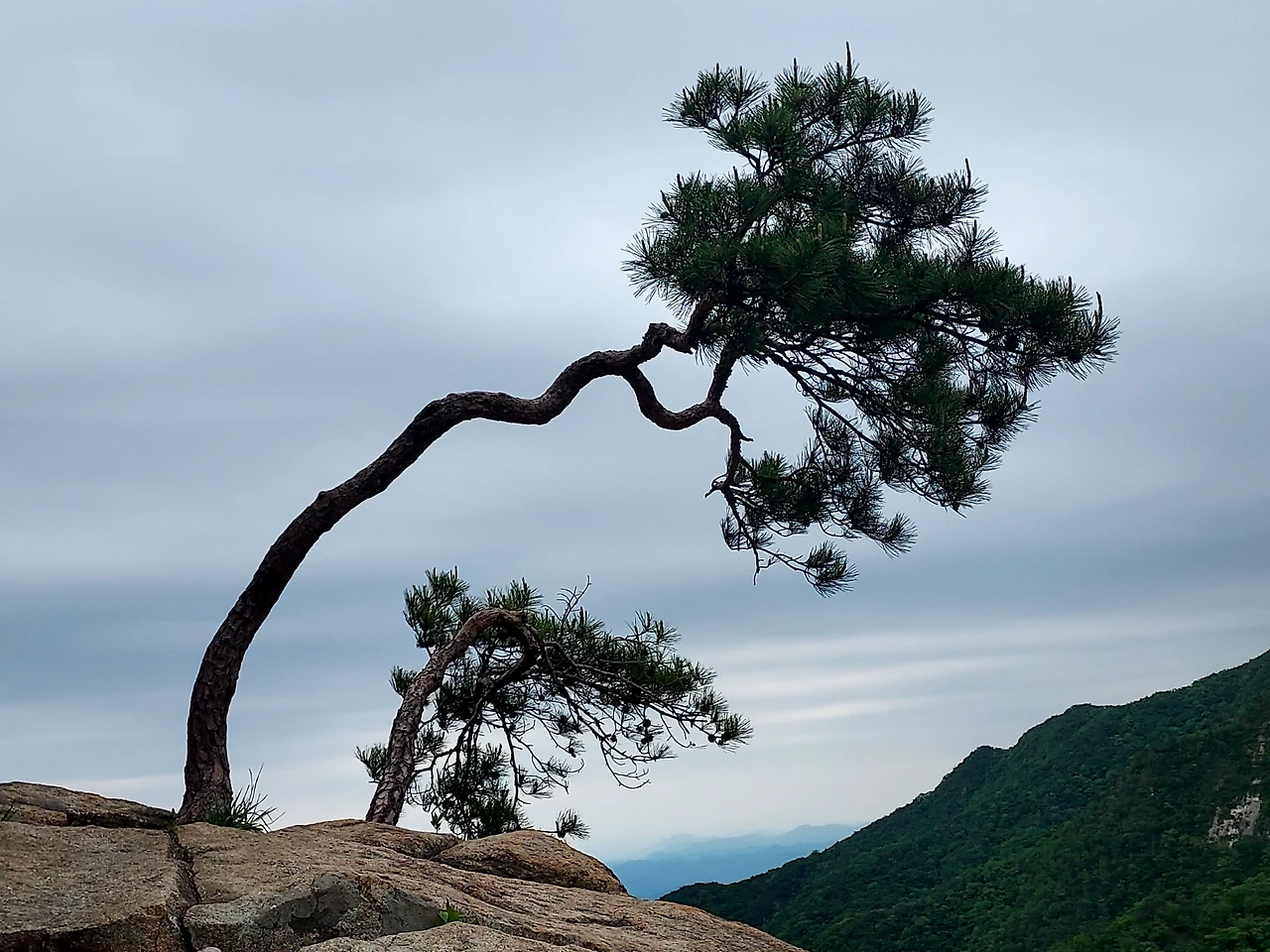 세찬 바람에 휘어진 허리가 굳어버린 채로...