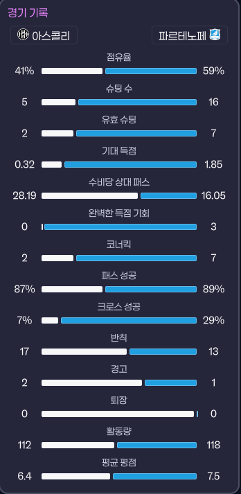 나폴리의 첫 경기는 친선전이었다. 상대는 아스콜리. 사실 아직도 EPL이나 유명한 팀 경기가 아니면 잘 안봐서 아스콜리가 어떤 팀인지, 얼마나 강한지 정확히 모르는 상태에서 플레이 했었다. 경기 중에 있었던 주요 장면들을 빠르게 끊어 보여드리도록 하겠다.