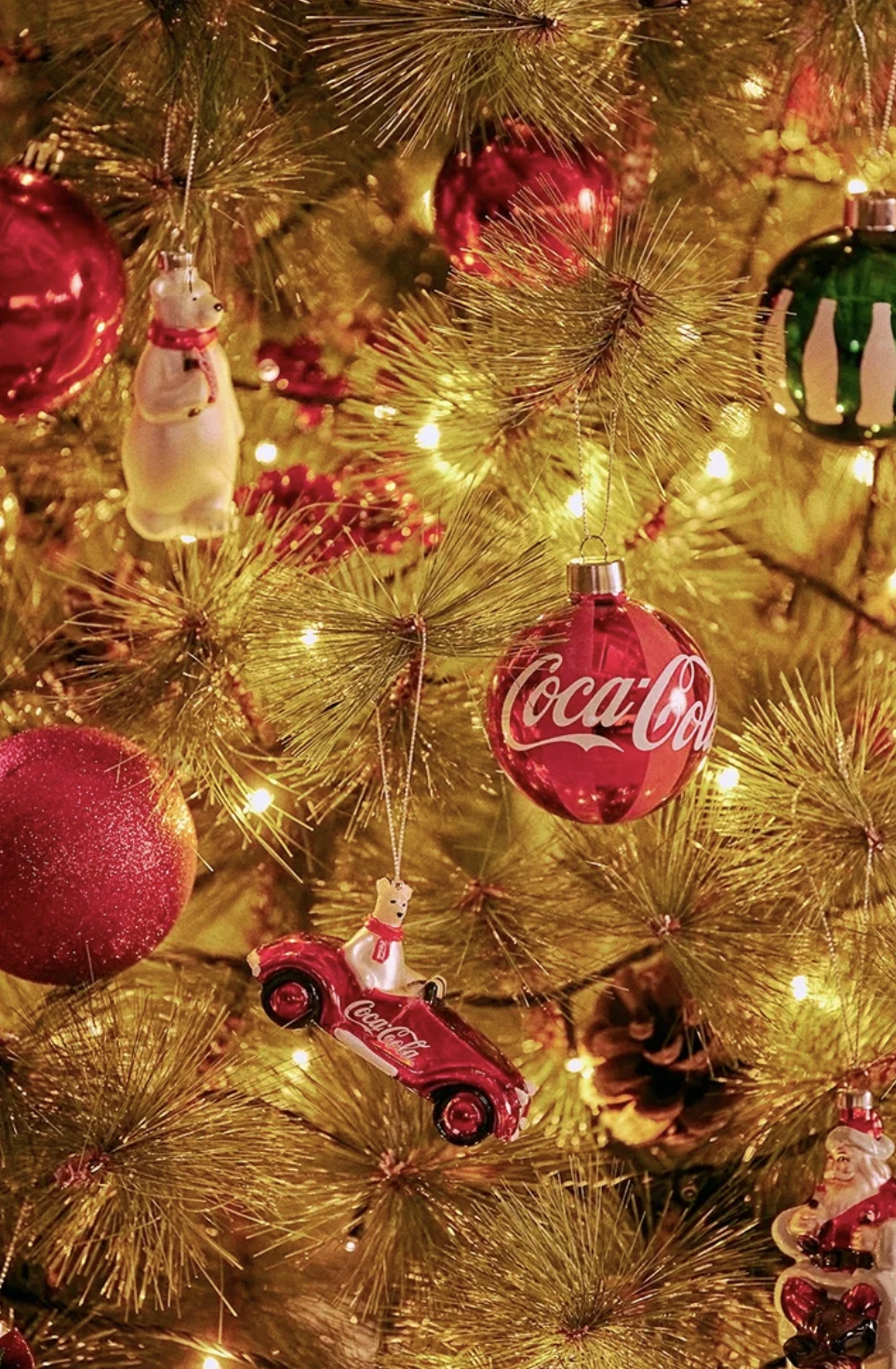 코카콜라에서 제작한 오너먼트입니다! 흰수염과 인자한 얼굴, 산타할아버지 하면 떠오르는 외형을 만들어낸 코카콜라도 매년 오너먼트 행사를 하는데요. 코카콜라의 붉은 아이덴티티 컬러와 초록색의 조합이 크리스마스 그 자체네요. 콜라병 모양으로 패턴을 만들어낸게 귀여운 디테일입니다.