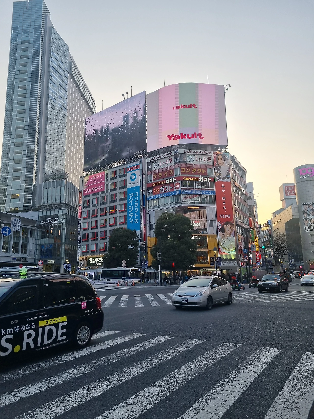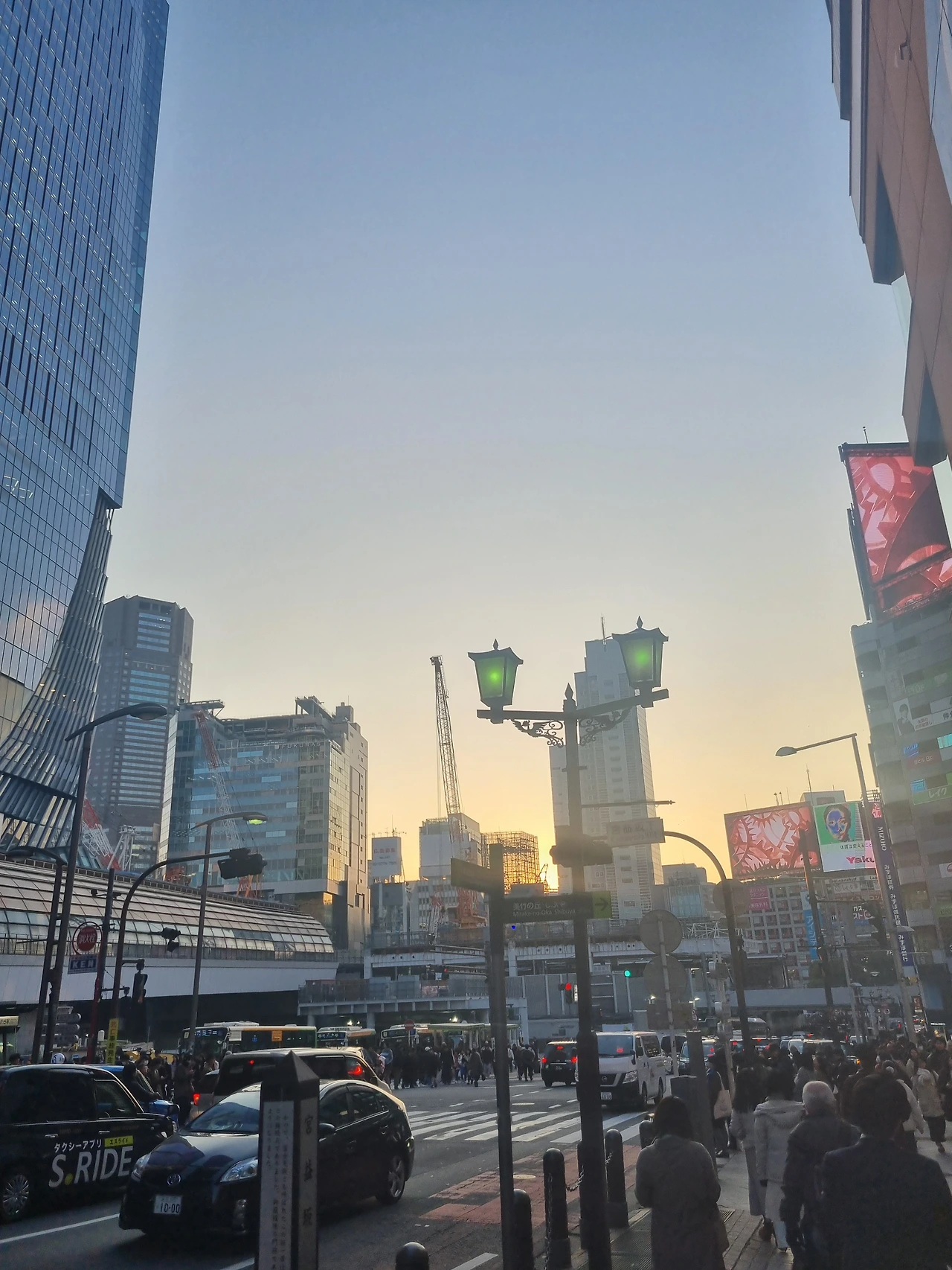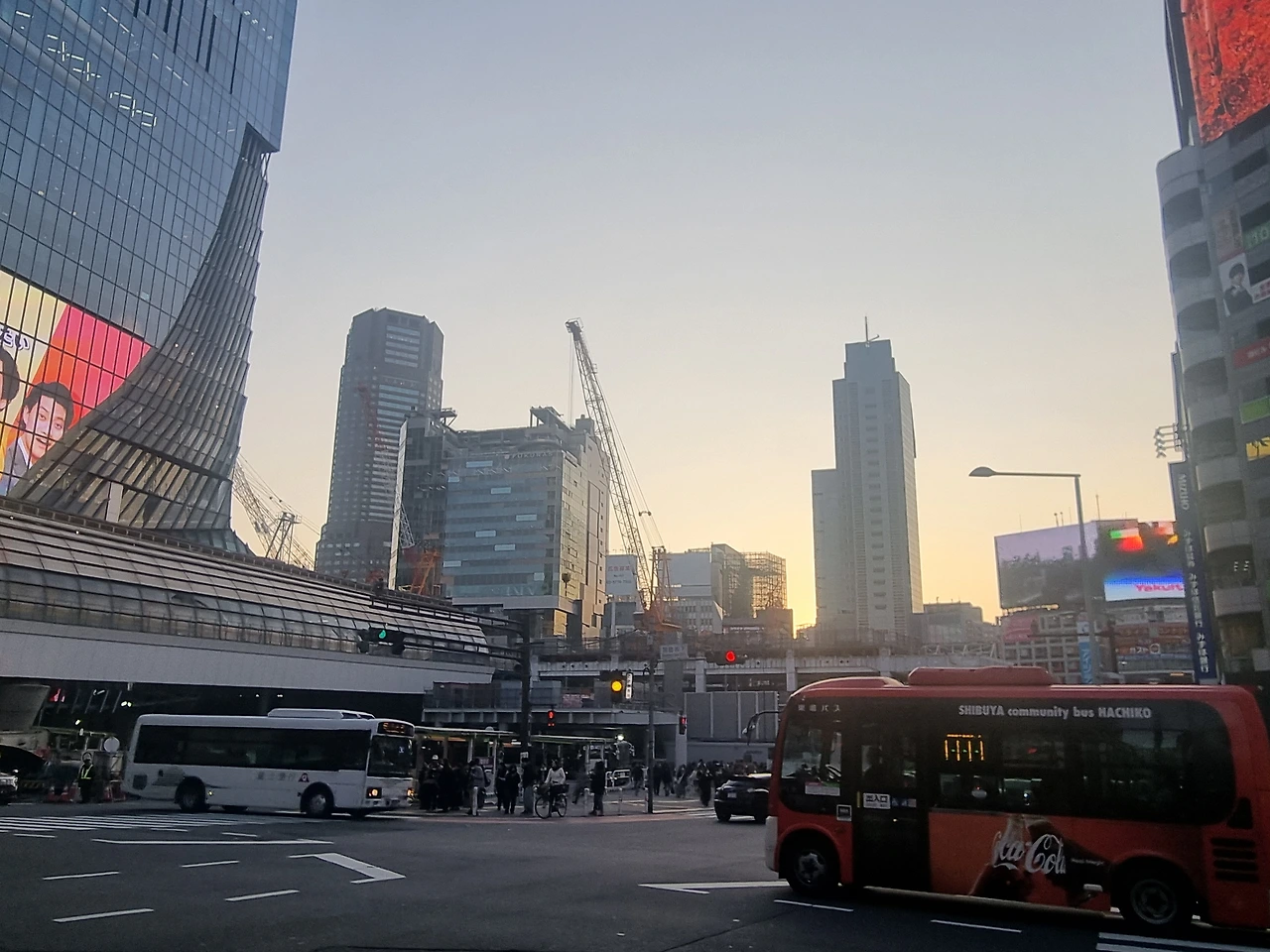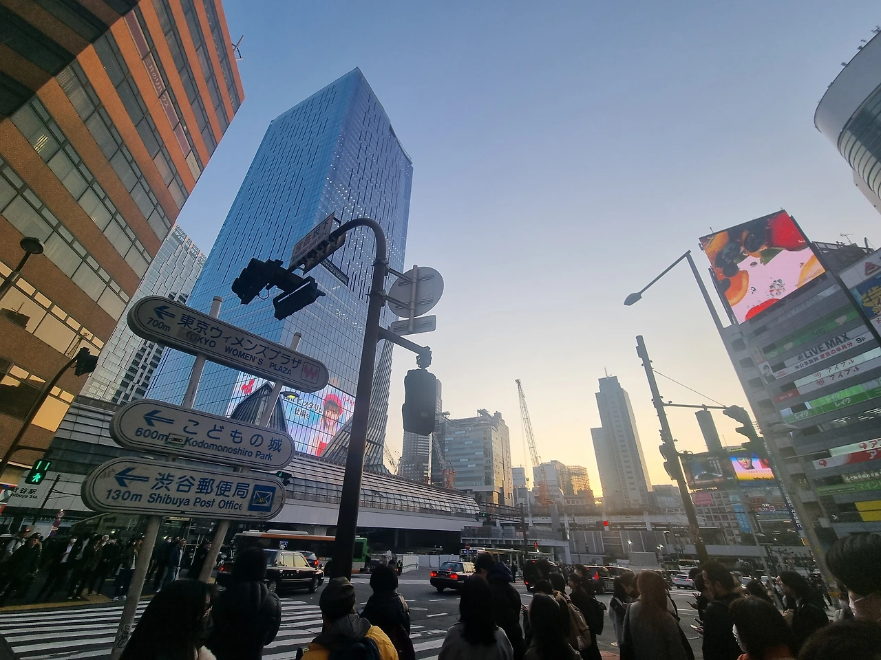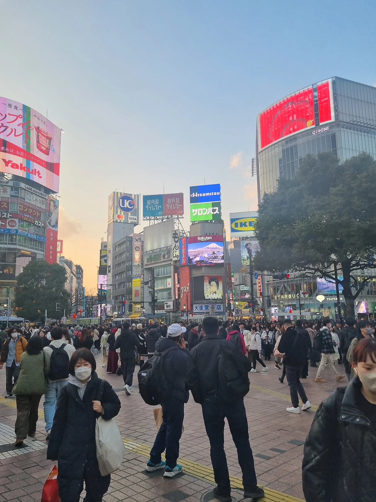 시부야에는 벌써 해가 지고 있었다. 스크램블 4차선 교차로에서 사진을 찍고 시부야 스크램블 전망대로 올라갔는데? 날짜를 잘못 잡아서 내일 자로 예매가 되어있었다.. 결국 시부야의 에스칼레이터를 못 타고 나오게 되었는데..?!