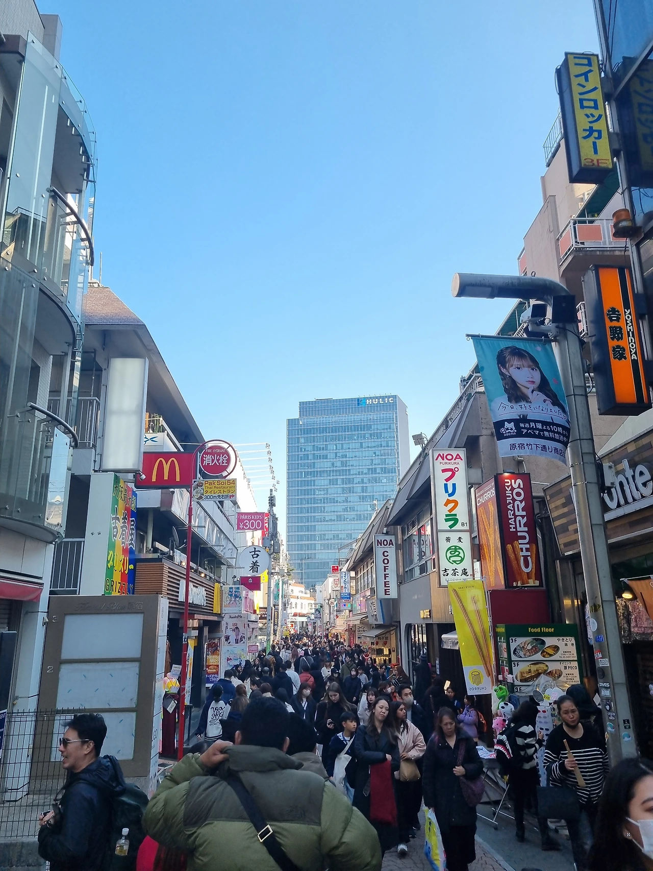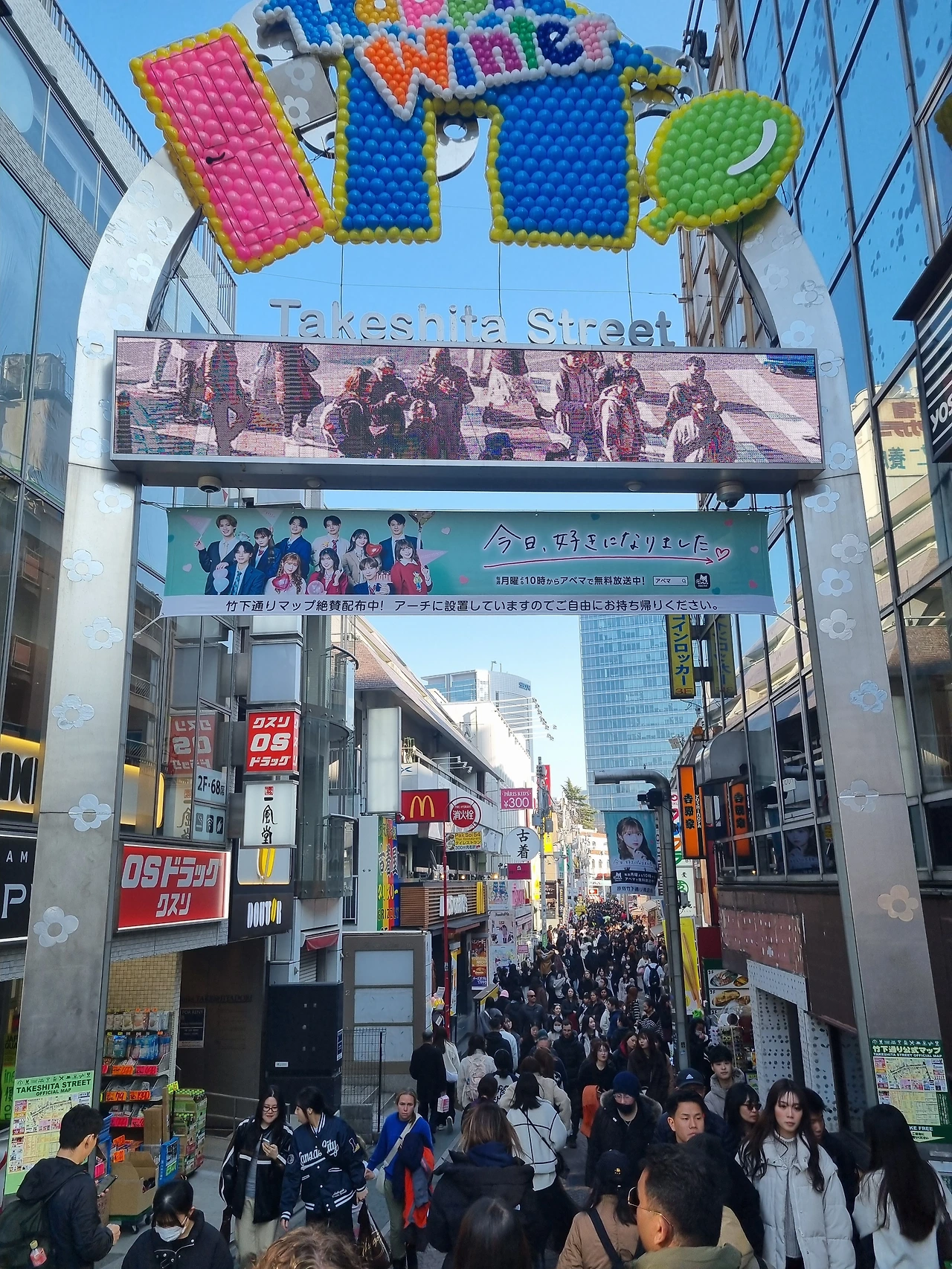 하라주쿠의 하이라이트인 타케시타 거리에 갔다. 약간 인사동 느낌도, 명동 느낌도 나는 길거리다. 초코바나나 크레페를 먹고 근처 거대 뽑기방을 둘러봤다.