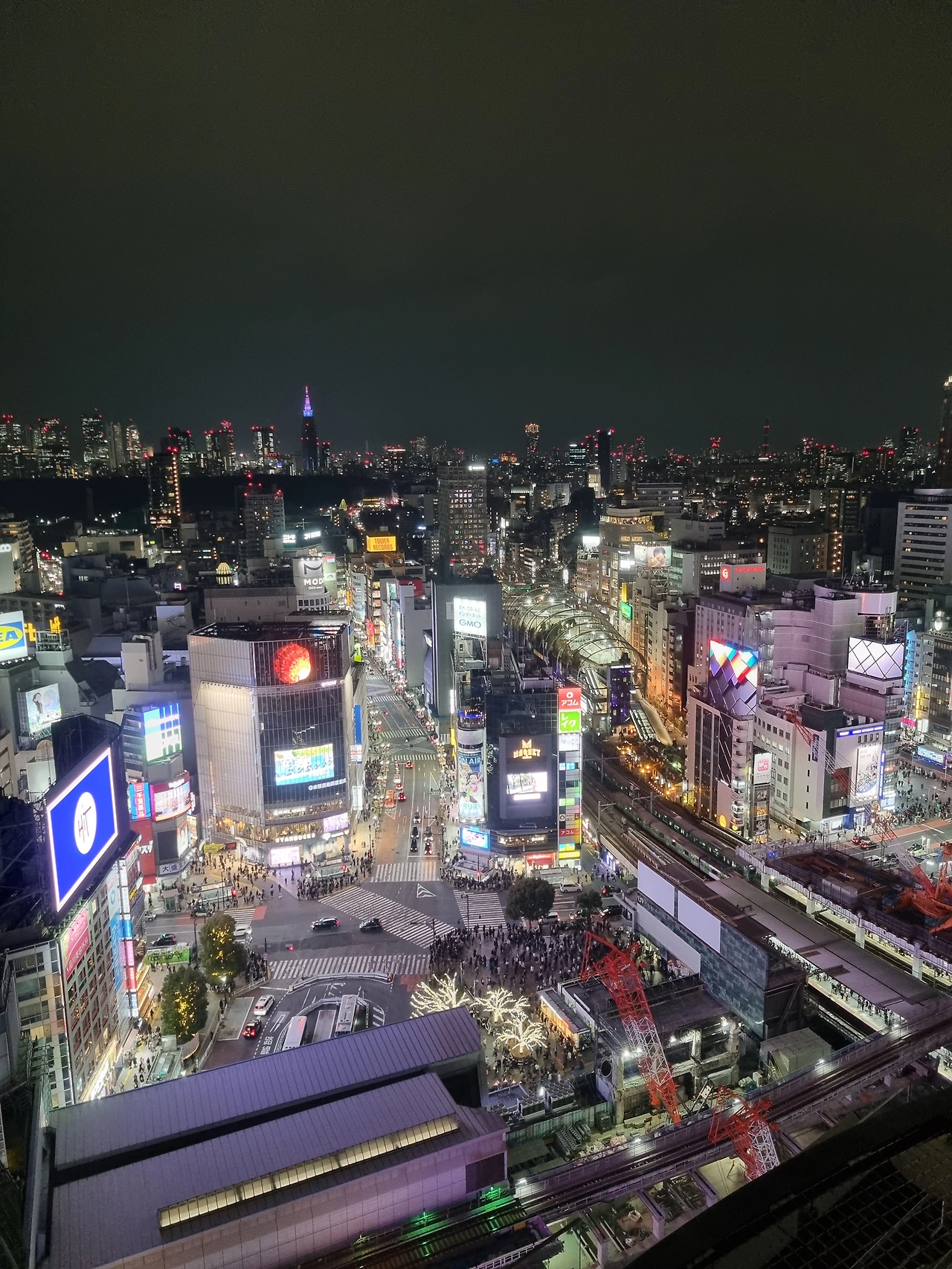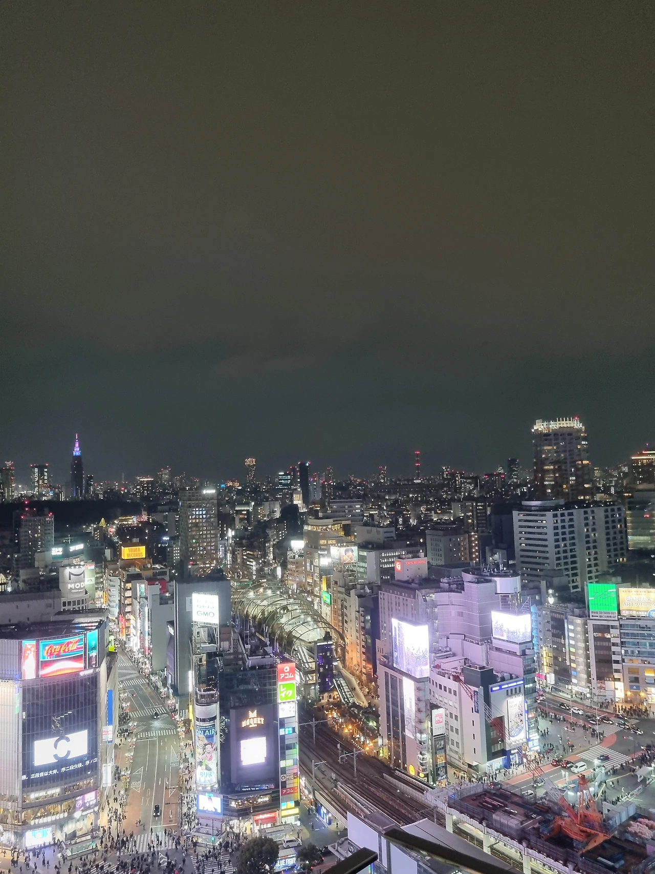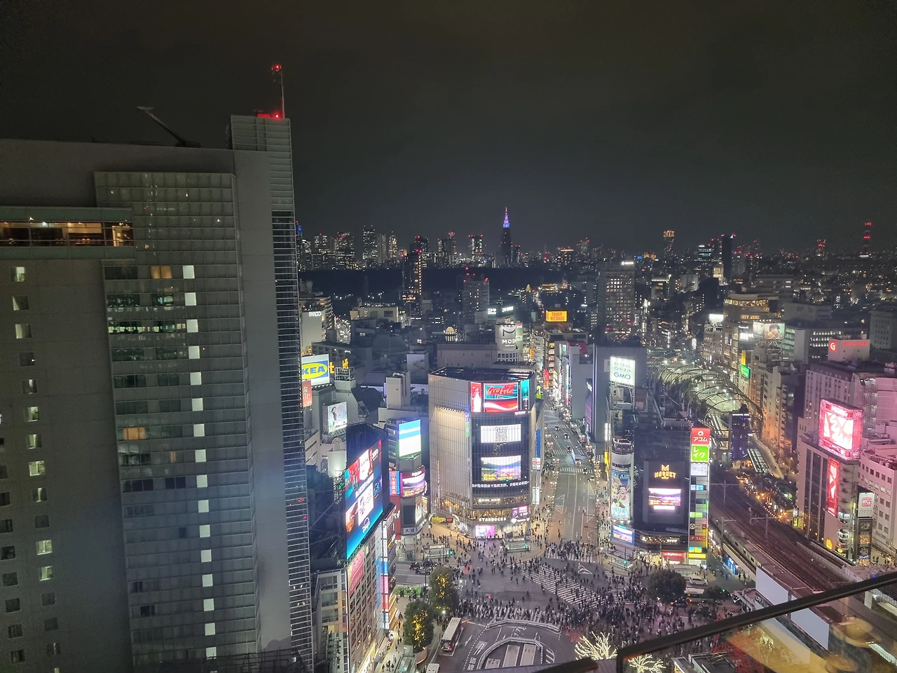 계속 뇌를 빼고 애들이 안내하는 곳으로 다니다가, 갑자기 타임 스퀘어보다 유동 인구가 많은 시부야역에 내던져지니 마치 인간은 세계에 내던져진 존재라는 하이데거의 말이 떠올랐다(진짜임). 처음에는 인파에 휩쓸려 이리 저리 다녔는데, 정신을 차리고 어떻게라도 야경을 봐야겠다는 생각이 들어서 구글에 몇 개 찾아보던 도중