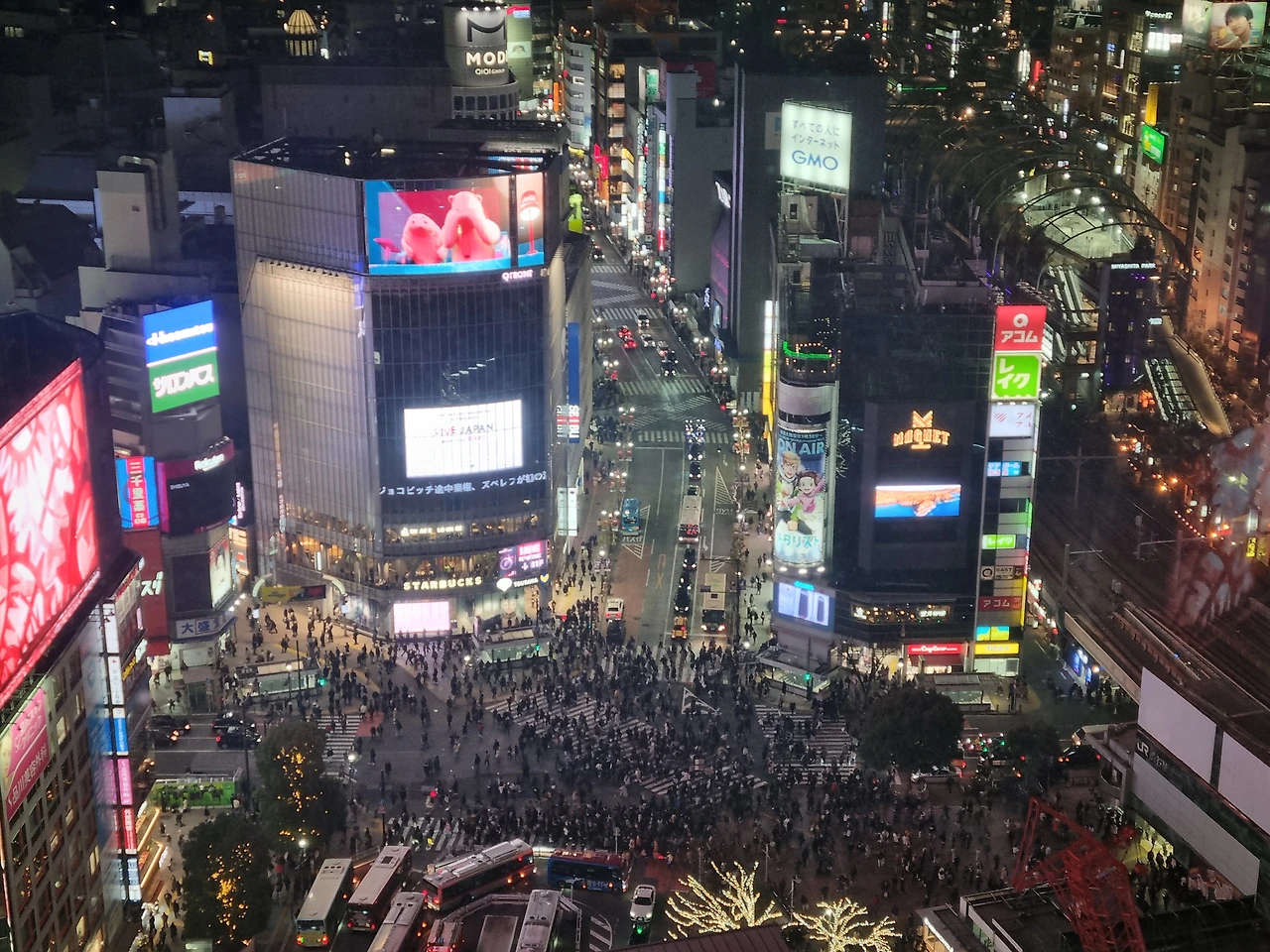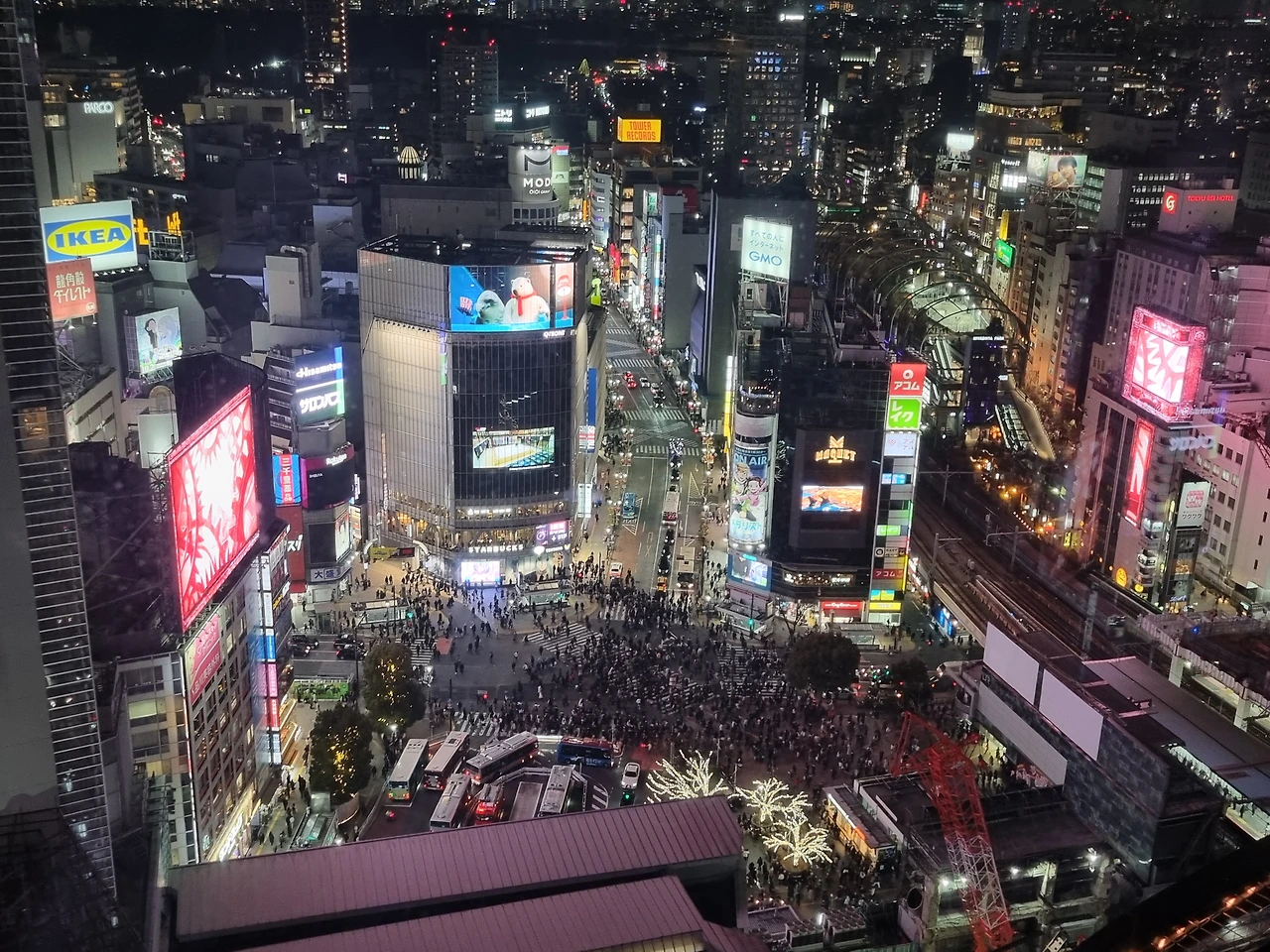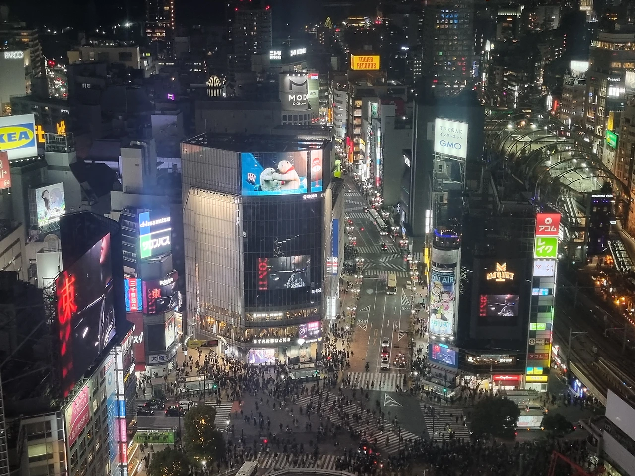계속 뇌를 빼고 애들이 안내하는 곳으로 다니다가, 갑자기 타임 스퀘어보다 유동 인구가 많은 시부야역에 내던져지니 마치 인간은 세계에 내던져진 존재라는 하이데거의 말이 떠올랐다(진짜임). 처음에는 인파에 휩쓸려 이리 저리 다녔는데, 정신을 차리고 어떻게라도 야경을 봐야겠다는 생각이 들어서 구글에 몇 개 찾아보던 도중