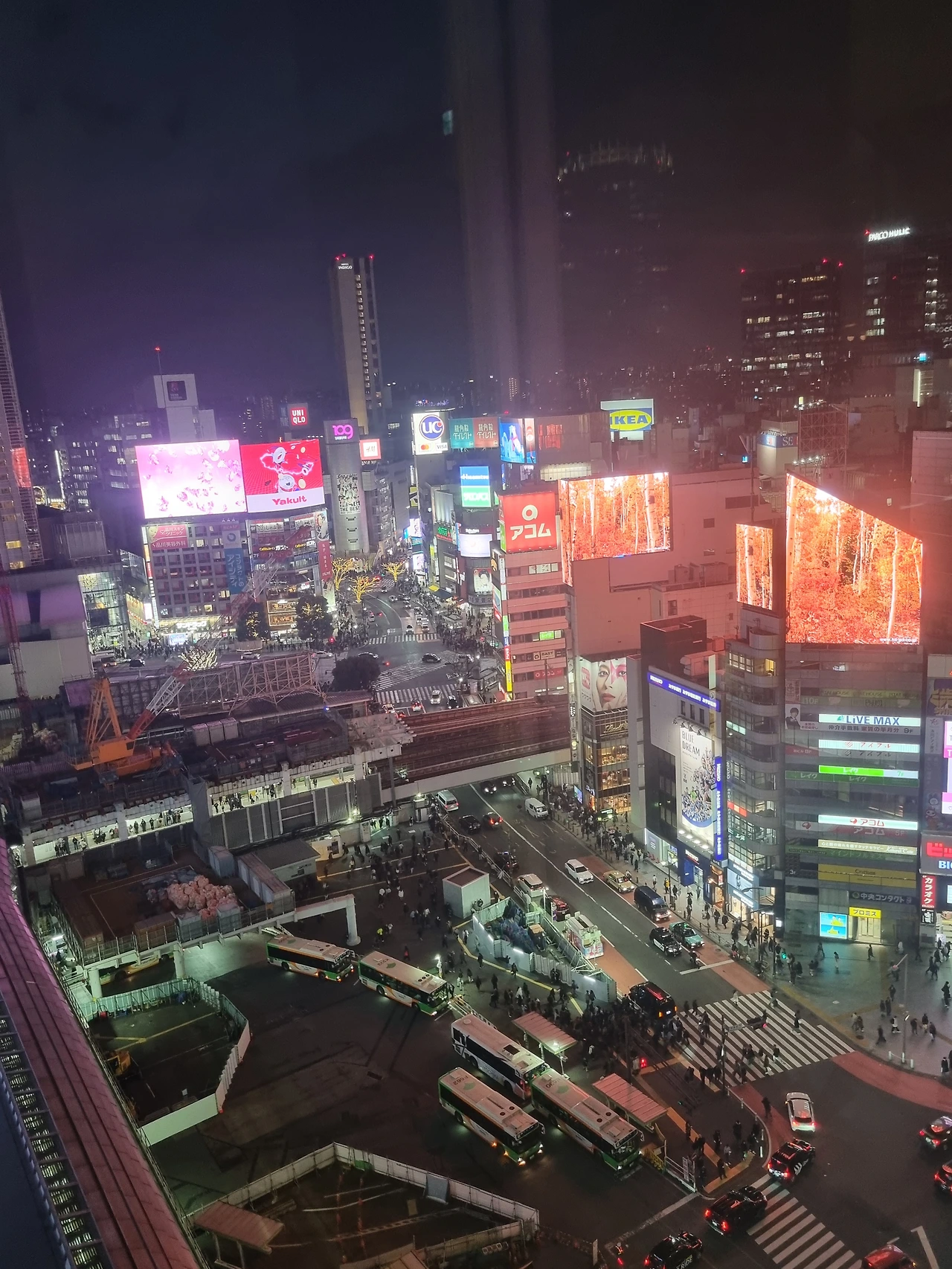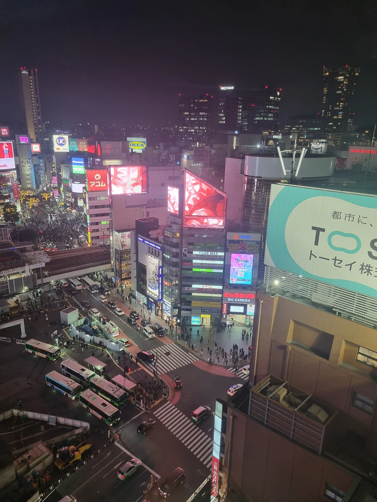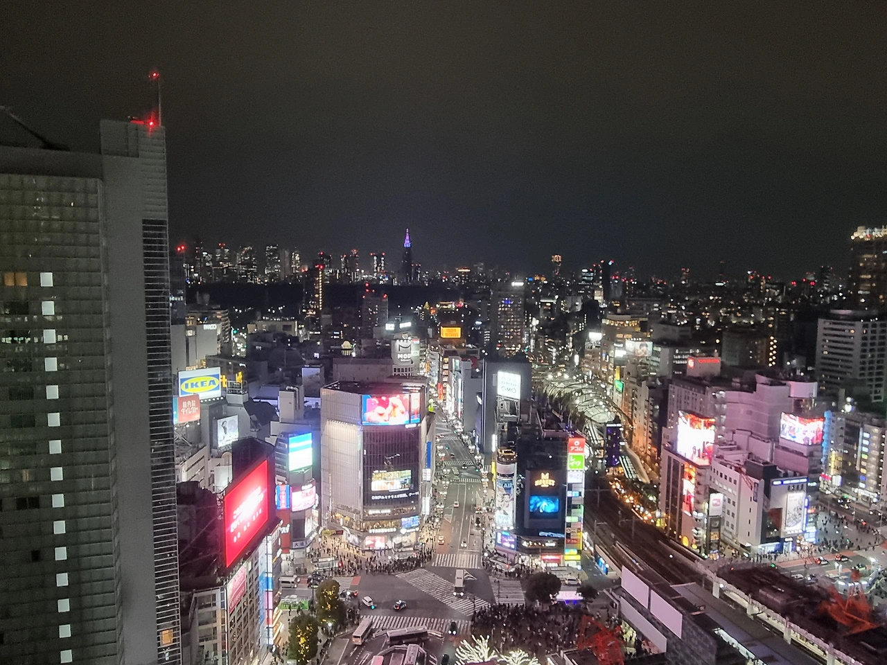 야경이 정말 장관이었다. 너무 멀지도 않고, 너무 가깝지도 않은 최적의 높이였다. 전반적인 시부야가 조망되면서도 단일한 자동차와 사람들 하나의 움직임에도 집중할 수 있는 최적의 시야.
