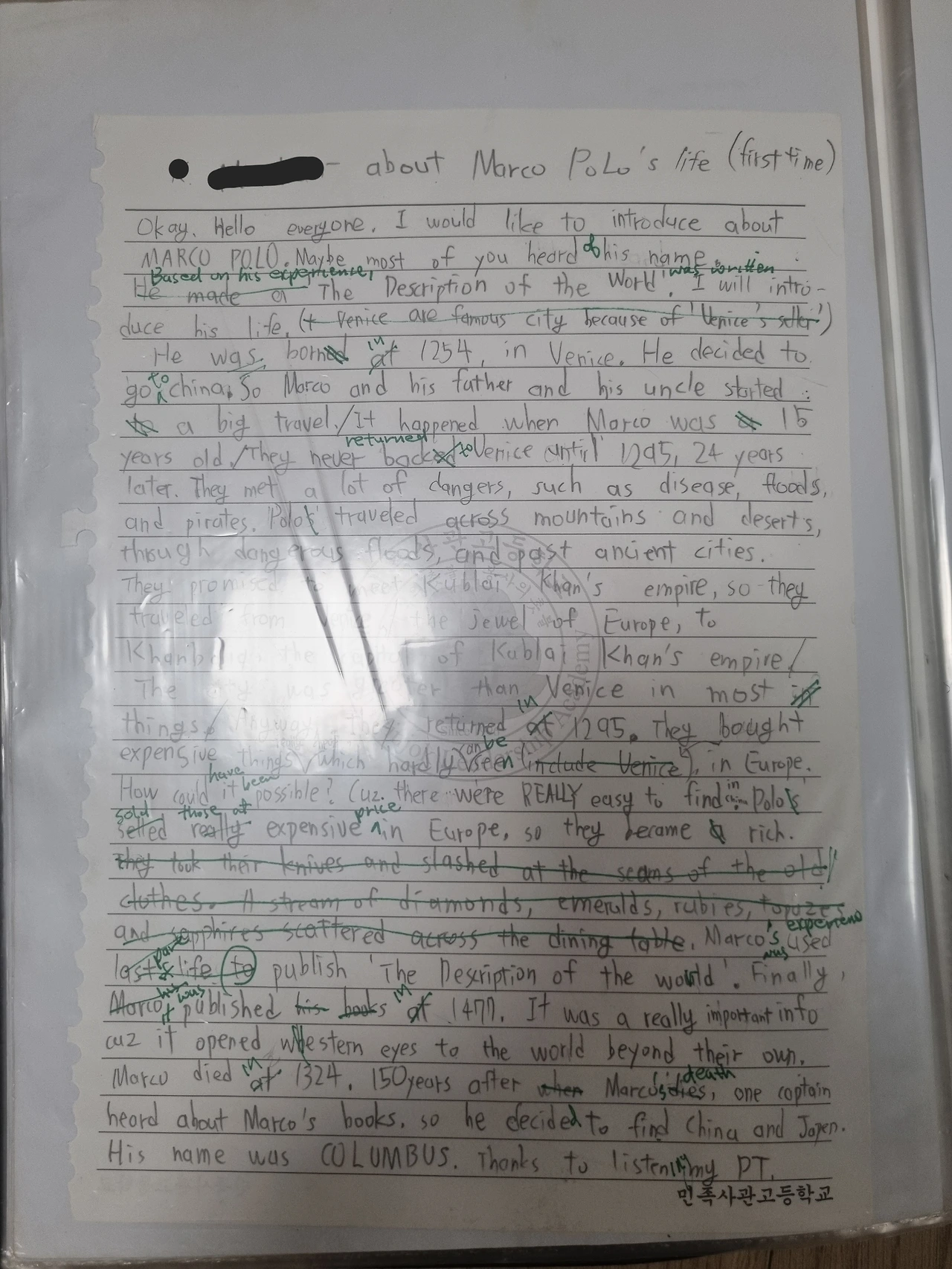 캠프에서는 내가 영어로 국제적인 이슈에 대해 토론을 하고, 연설문을 쓰고 300명 앞에서 영어로 발표하고, 책들과 인터넷으로 자료 조사를 해서 내가 직접 팀장이 되어 국제적인 문제의 해결을 위한 프로젝트를 주최하기도 했다.