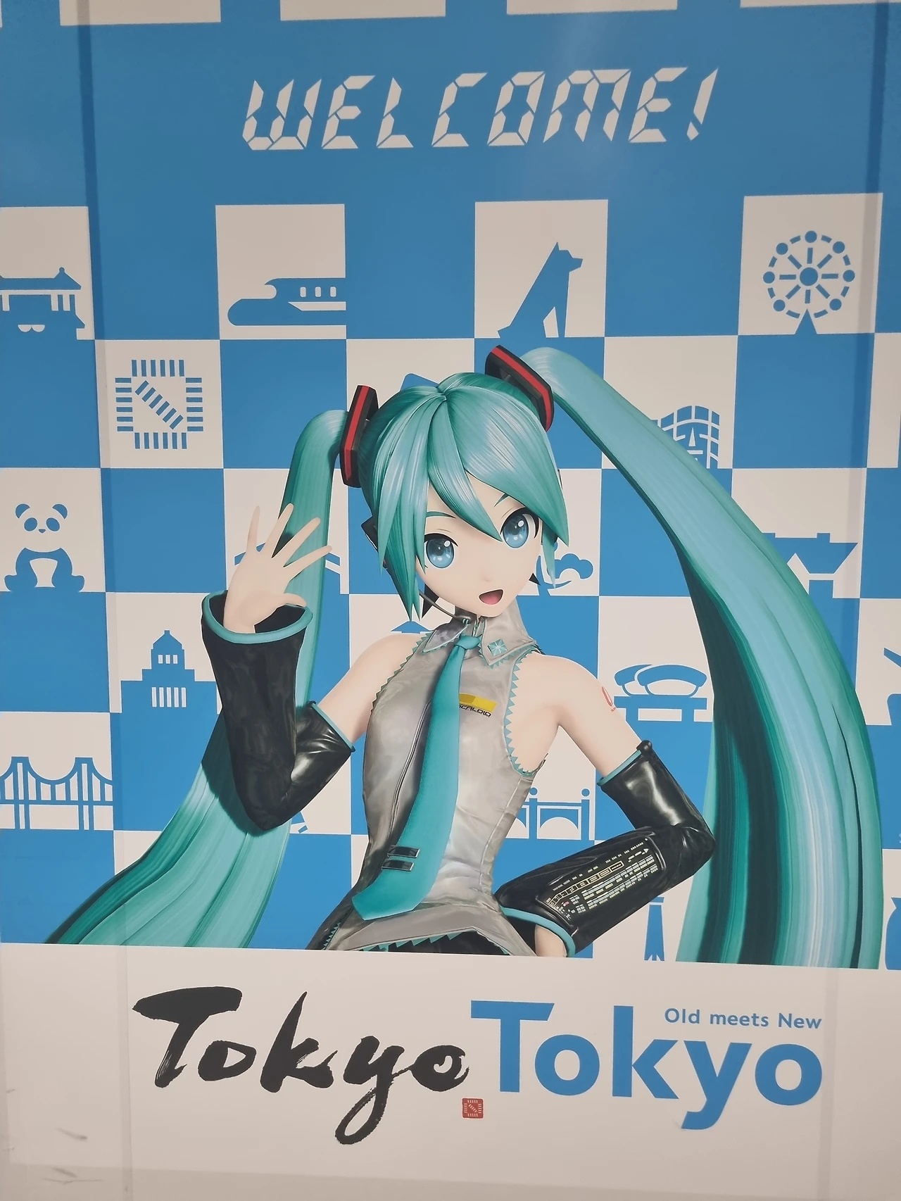 나리타 공항에 내려서 입국 소속을 마치니까 거대한 미쿠!! 가 나를 반겼다. 미쿠는 인싸픽 캐릭터이다.