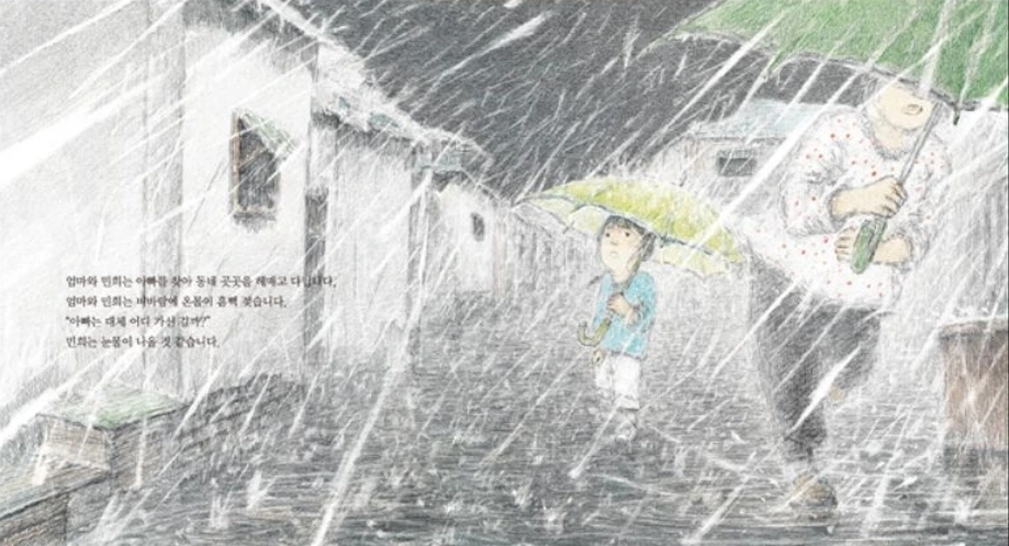 비 오는 날, 지붕 위에서 우산을 들고 서 있는 민희 아빠의 모습은 단지 한 장면이 아니라, 우리가 살아가는 동안 마음 깊숙이 새겨진 어떤 ‘기억’과도 닮아 있다.
