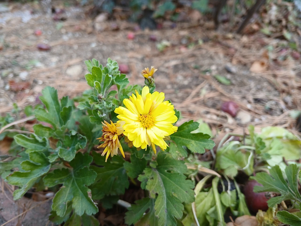 - 한겨울 차가운 바람에도 꿋꿋하게 살아가는 국화꽃 -