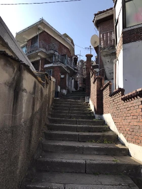 걸으며 보면, 생각도 못한 것들을 만난다. 옛날 고향, 좁은 골목길이 서울 언덕에도 있다. 예전에 집이 드문드문할 때는 자연과 어우러졌을 거다. 집들만 빽빽해진 지금은 제당, 보광사가 쌩뚱맞다. 느리게 시간을 보낸 마을이 최첨단으로 개발될 거다. 부디 멋있게 바뀌길 바란다.