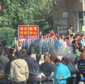 점심시간에 맞춰 초등생 자녀를 데리러 온 부모님들 인파와 이로인해 꽉 막힌 도로