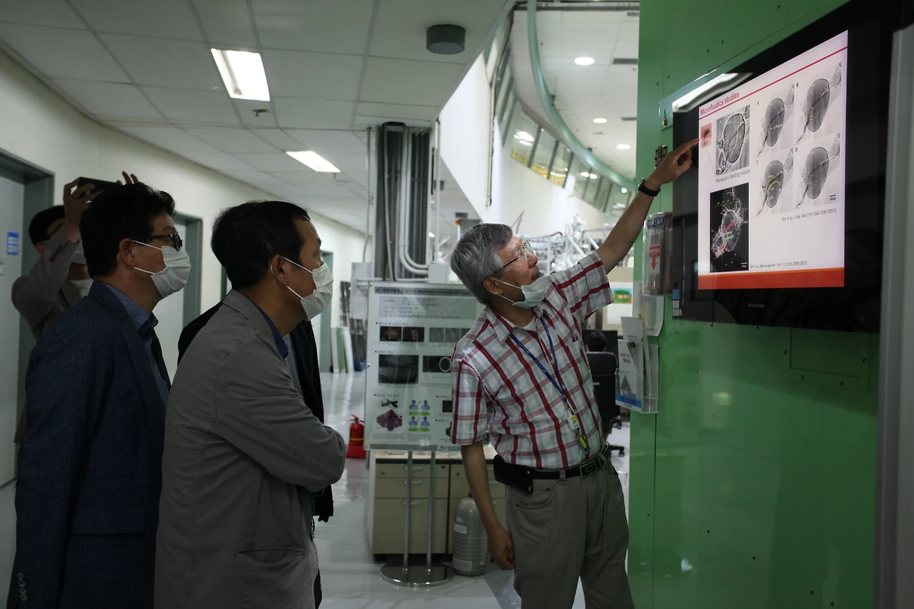 원형 가속기 주변에 연구실. 한쪽 보드에 모기 사진(동영상)을 보여주셨다. 모기가 피를 빨아먹는 사진이다. 그때 미세 근육들의 움직임. 가속기로 찍은 사진이라고. 과학 연구는 자연이 선생이다. 거기에 답이 있다고. 모기의 흡입 메커니즘을 연구해 사람 몸에 넣을 수 있는 아주 작은(효율적인) 펌프를 만든다면.. 인슐린 환자가 병원에 가지 않아도 적절한 시간마다 약을 주입할 수 있을 거라고.
