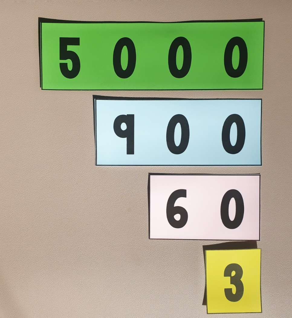 천의 자릿수, 백의 자릿수, 십의 자릿수, 일의 자릿수를 각자 다른 색의 종이에 인쇄하기