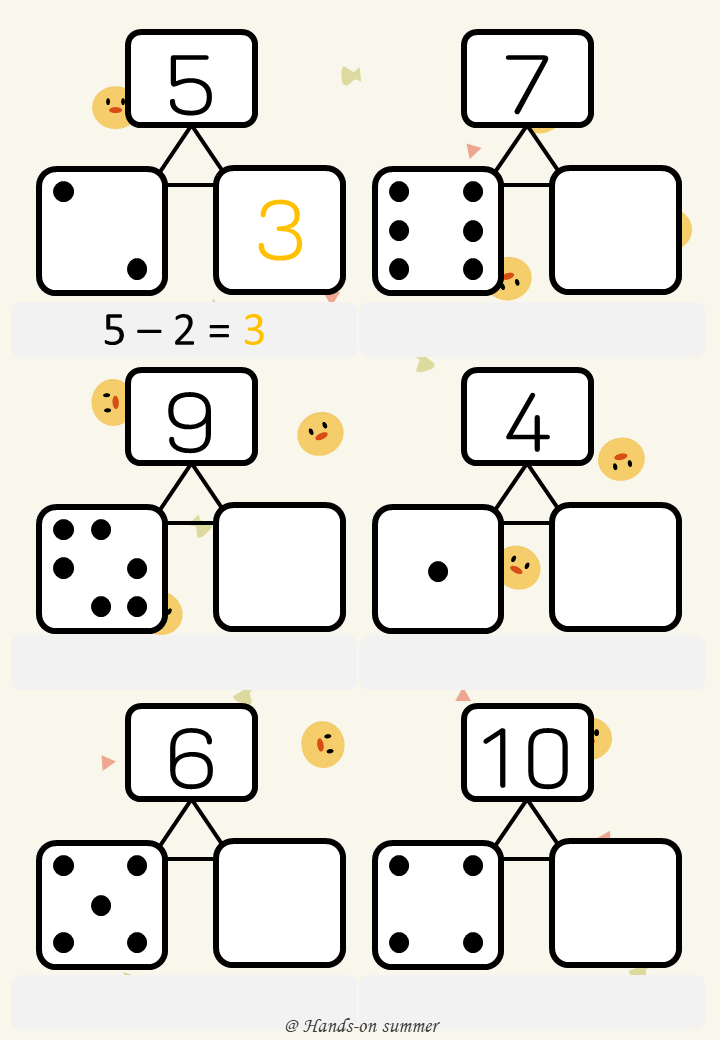 뺄셈을 연습하며 세 수의 관계를 인식하기