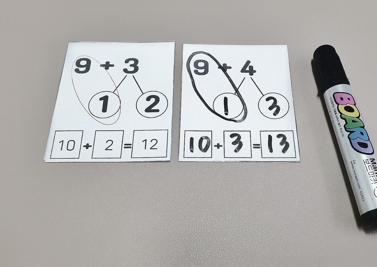 위의 단계를 거쳐 값이 10이 넘는 덧셈식을 계산하는 여러 가지 방법에 대해 이해한 후,