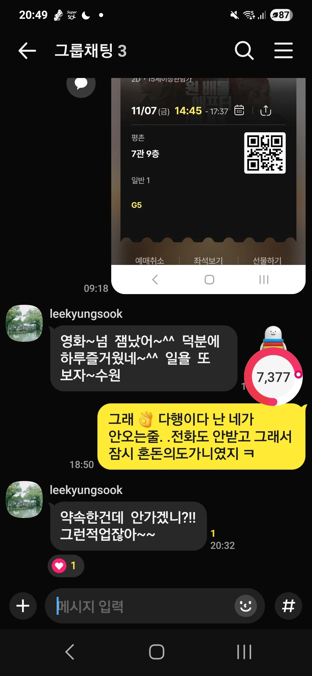 영화가 끝나고 나서야 친구의 메시지가 도착했다.
