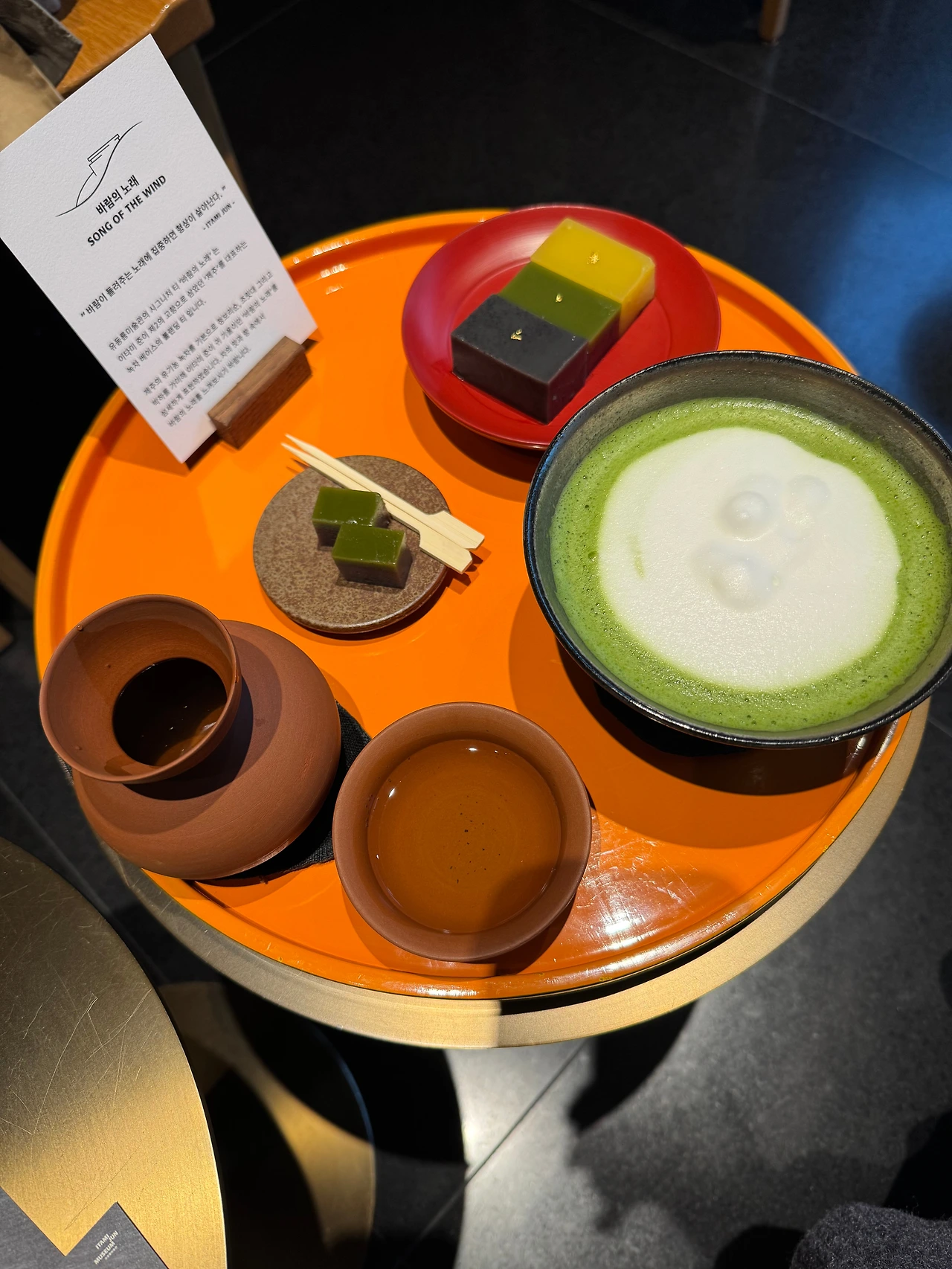 잔을 입에 대자, 말차 특유의 쌉쌀함 아래에 부드러운 단맛이 깔려 있었다.