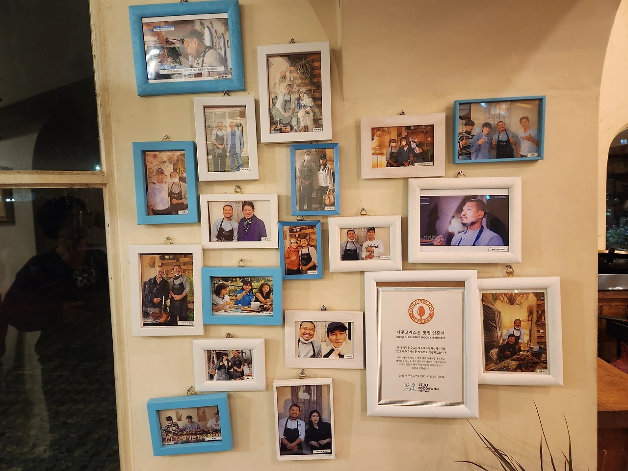 문을 여는 순간부터 이곳의 공기는 묘하게 따뜻했다. 벽 한편을 가득 채운 사진 속 사람들은 모두 환하게 웃고 있었고, 요리사와 손님이 아니라 오래 알고 지낸 친구들처럼 서로의 어깨를 나란히 맞대고 있었다. 조명 아래 빛나는 얼굴들은 이곳이 단순한 식당이 아니라, 제주가 품고 있는 또 하나의 작은 이야기방임을 알려주었다. 베로니카는 사진 하나하나에 시선을 천천히 두며 말했다.