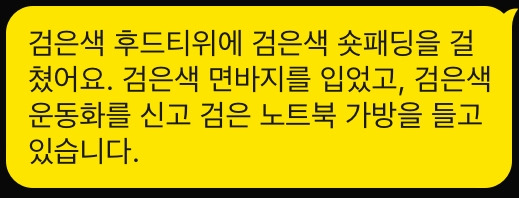 처음 만나는 사람에게 나의 인상착의를 설명하는 문자메세지를 보내라.