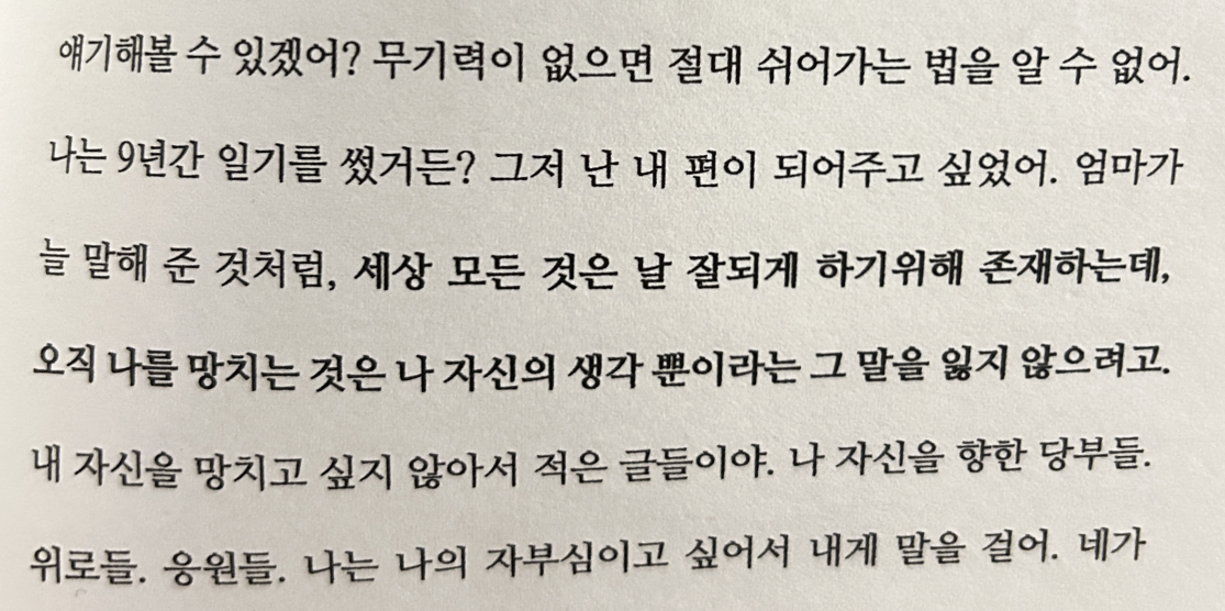 "잘해왔고, 잘하고 있고, 그리고 앞으로도 잘할 거야. 너 자신을 좀 믿어봐"