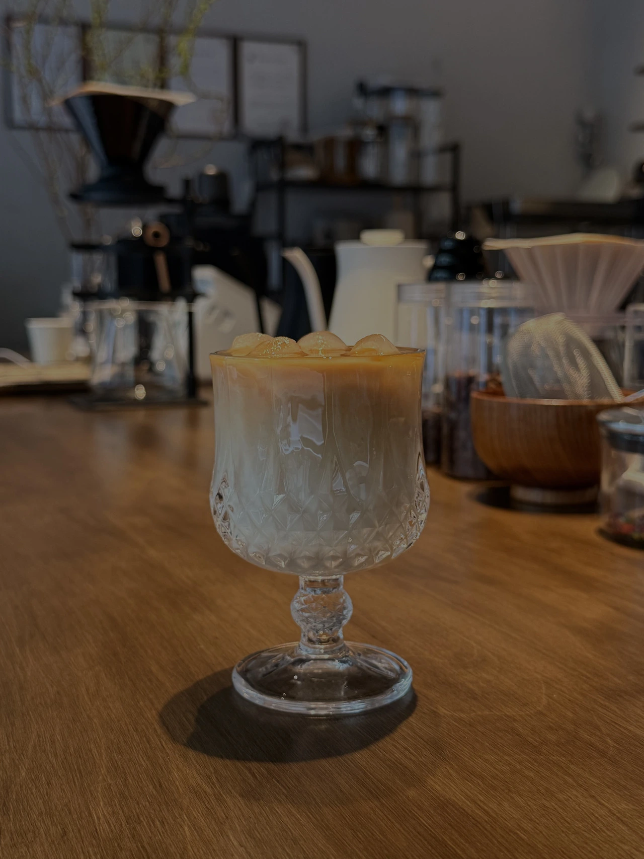 저는 아무것도 묻지 않고, 투명한 잔에 얼음을 채워 차가운 우유 위로 짙은 커피를 천천히 흘려보내겠습니다.