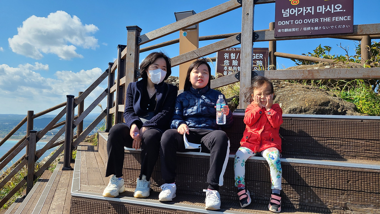 성산 일출봉 정상에 오르니, 숨이 차다...