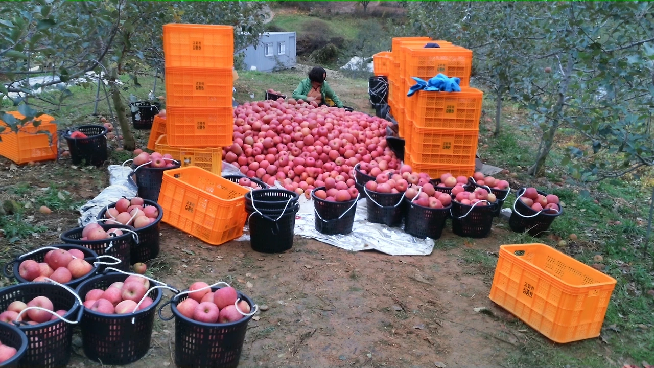 사과를 수확(收穫)하는 일은 생각보다 힘들다.