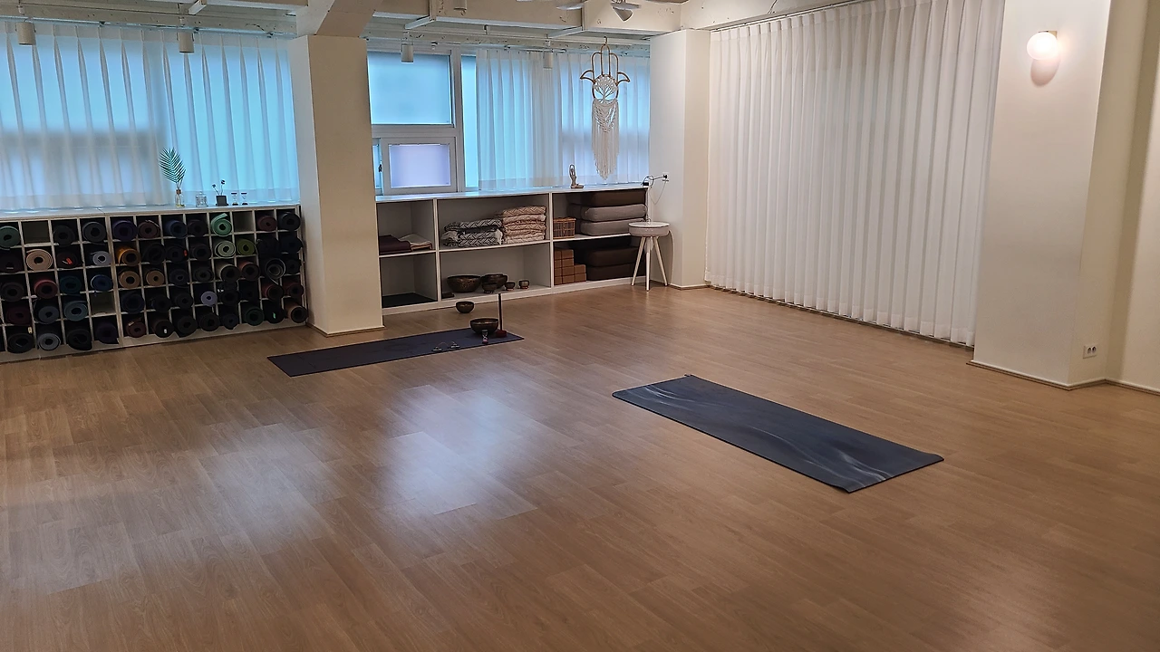 매트를 펴니, 잔잔한 음악이 요가원에 흐른다.