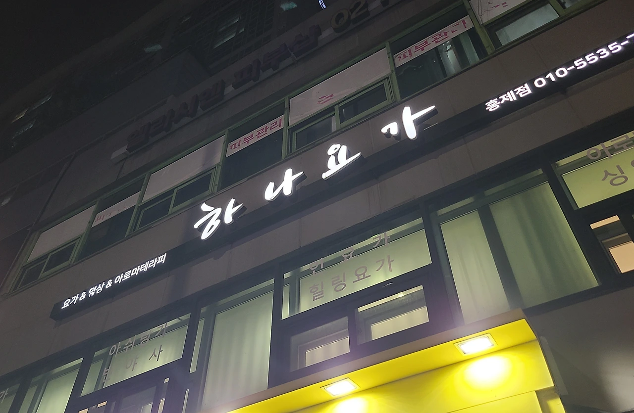 아~ 낮에 왔던 요가원을 밤에 다시 찾는다.