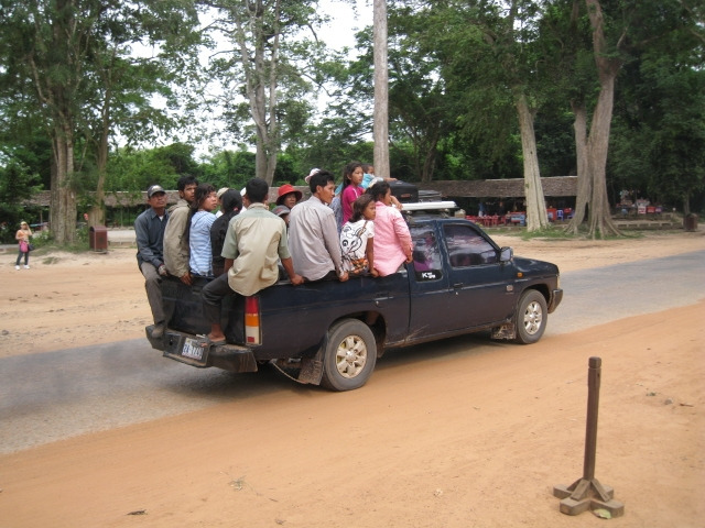 이런저런 생각을 하는데 참 재미난 광경이 스쳐지나간다. 이곳 현지인들이 이용하는 버스는 바로 용달차. 용달차에 짐이랑 사람이랑 가득 실고 지나가는 광경이 마치 우리나라의 60~70년대를 생각나게 한다. 또한 여기는 우리나라와 반대로 국토의 66%가 평야라 아무리 주위를 둘러봐도 산이 없다는 게 인상적이다. 그래서인지 여건만 맞으면 일 년에 4모작까지 가능하다고 하니 농사짓기에는 아주 안성맞춤인 곳이 바로 이곳 캄보디아다.