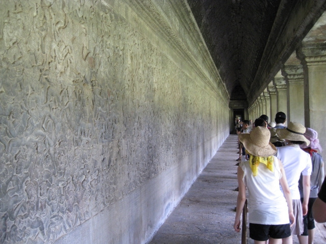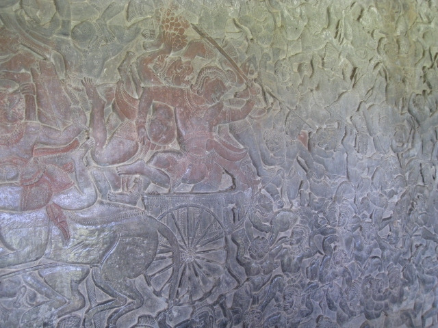 11시가 조금 지나 관람하는 형제끼리 왕권을 두고 다투는 두 번째 벽화는 다른 벽화와 달리 유난히 반짝거린다. 관람객들이 워낙 손으로 만져 염분으로 인해 그렇게 되었다는 설명을 들으니, 벽화로 향하는 손길이 금세 부끄러워진다. 세계에서 죽기 전에 꼭 가봐야 하는 여행지 50곳 중 27번째에 들어가는 앙코르와트인 만큼 관리와 관람객의 문화재 보존 의식이 더욱 성숙해질 필요가 있을 것 같다.