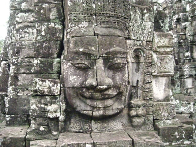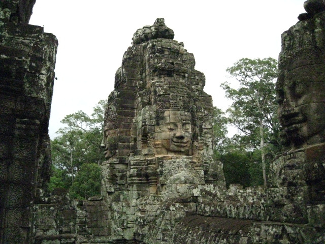 바이욘 사원은 제1회랑과 제2회랑으로 둘러싸인 중앙에는 높이 42m의 본전이 솟아있고, 사면체의 관세음보살상이 사원 안에 총 49제가 있는데 곳곳에서 신비한 미소를 짓고 있다. 성문에 1채씩의 보살상을 합치면 모두 54채의 4 면상은 당시 왕국 안에 있는 주(州)의 숫자와 일치한다고 하니 유적지 안에 의미가 없는 부분이 하나도 없어 그저 신기할 따름이다.