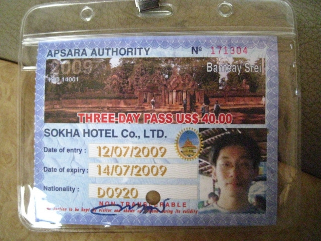 앙코르와트 입장을 위한 입장권 발급을 위한 사진을 캠으로 찍는데 역시 더운 나라답게 오전임에도 불구하고 날씨가 꽤 무덥다. 40달러인 3일 입장권을 마치 보물인 양 목에 걸고 드디어 앙코르와트 관람 시작!