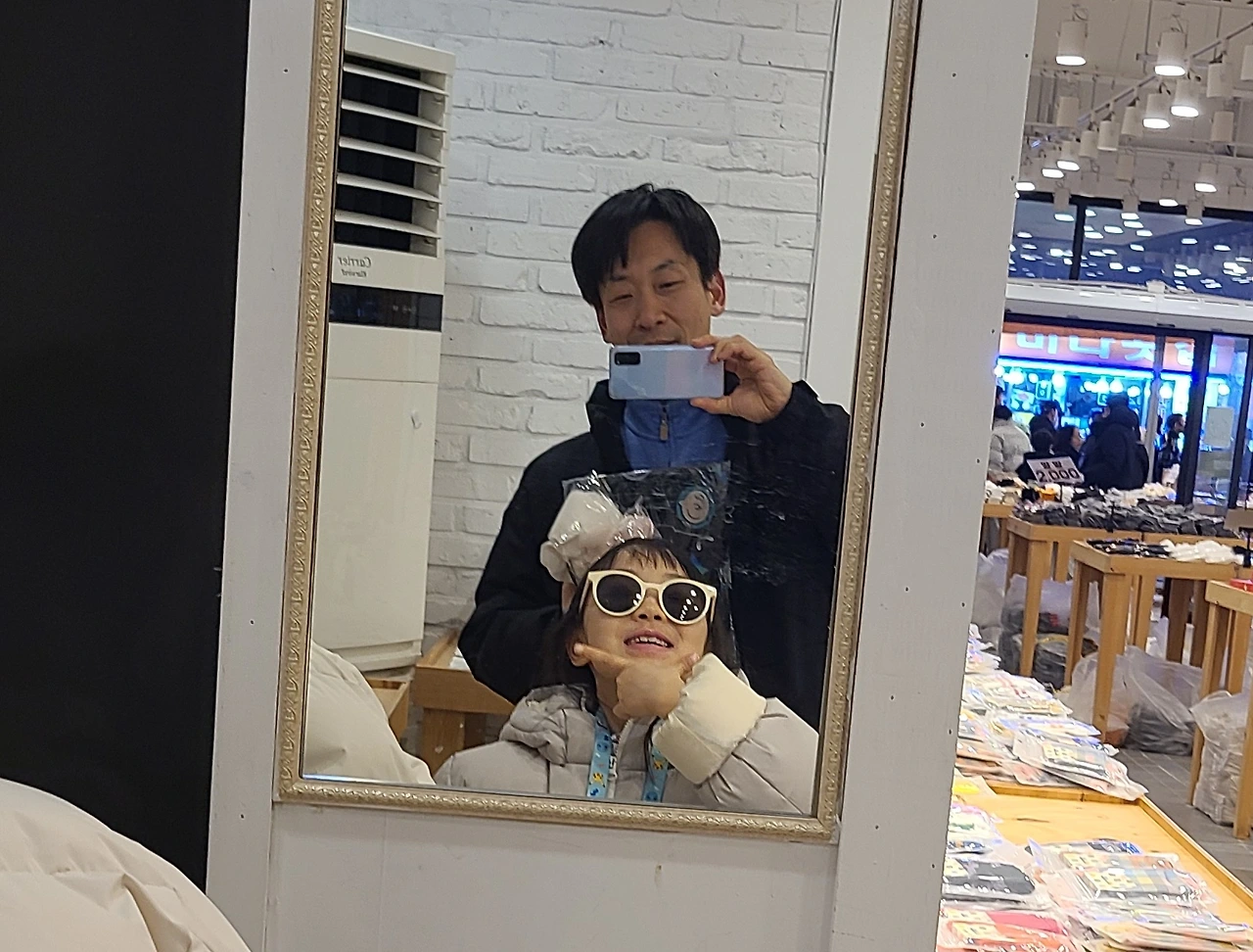 "아빠? 뒤돌아봐. 내가 사진 찍어 줄게"